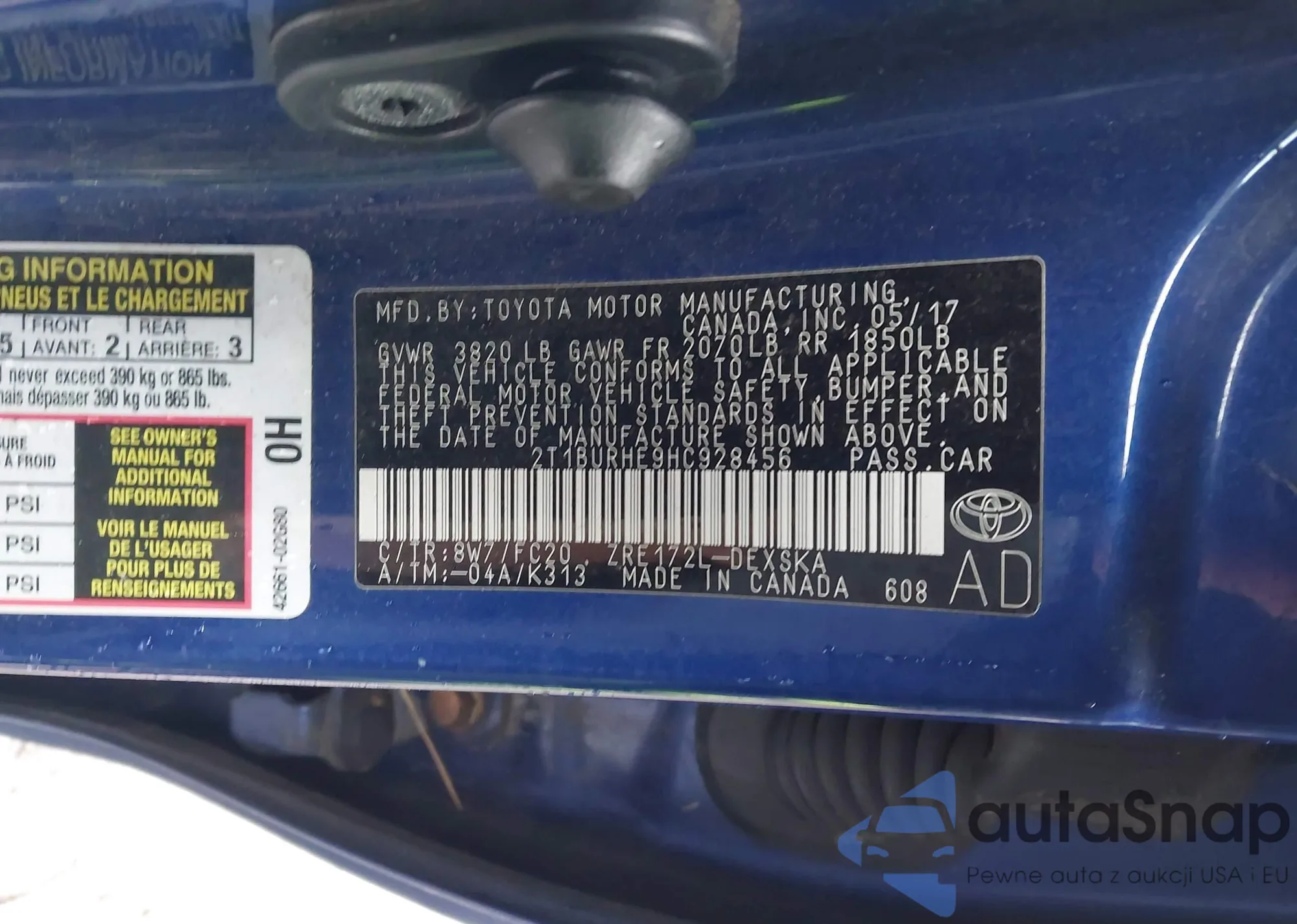 • VIN 2T1BURHE9HC928456