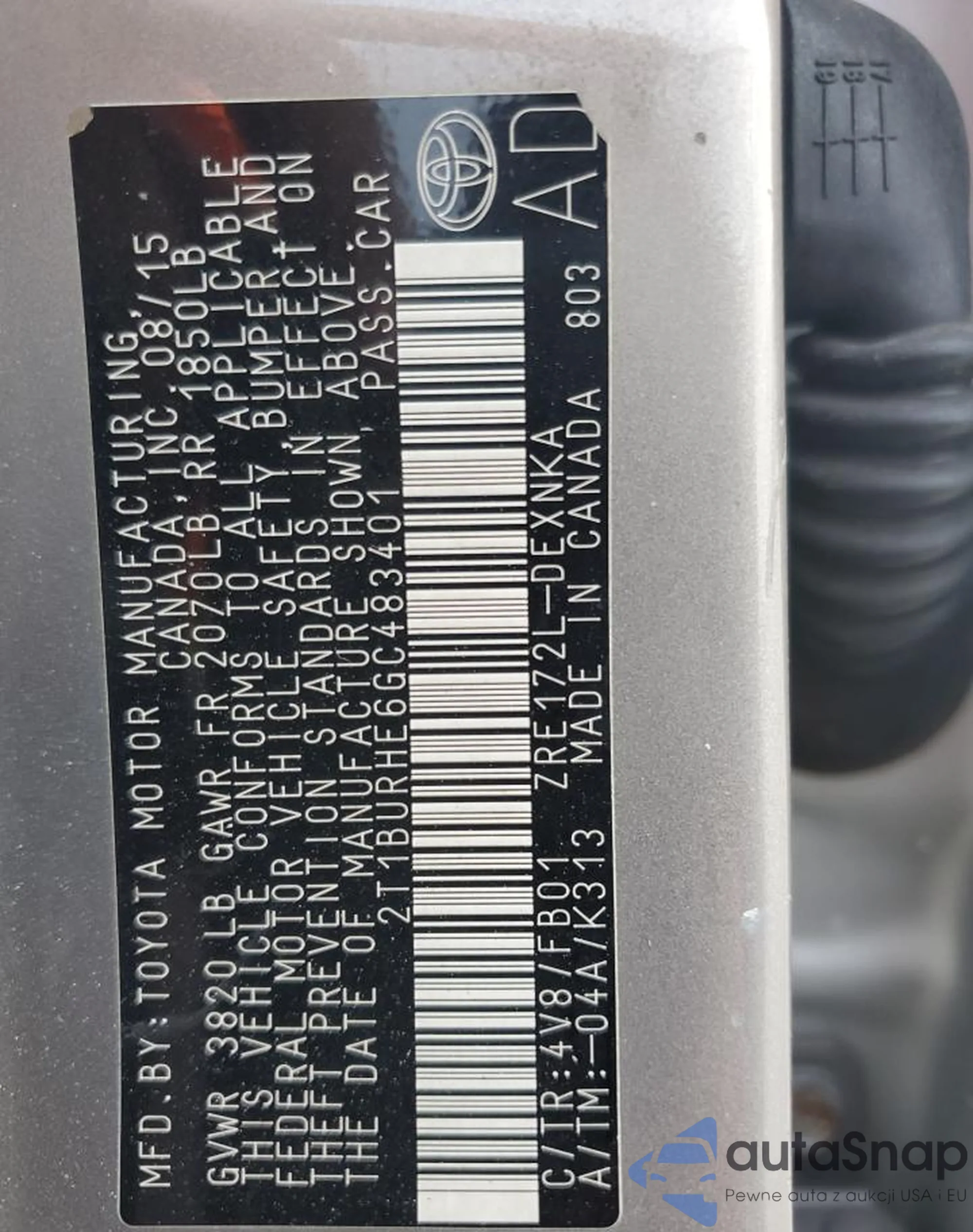 LOT: 80363785 VIN: 2T1BURHE6FC361006