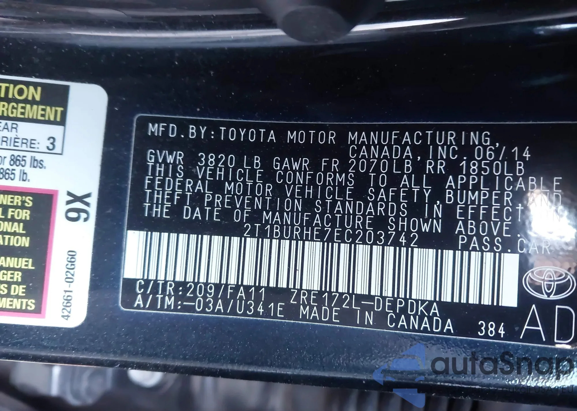 • VIN 2T1BURHE7EC203742