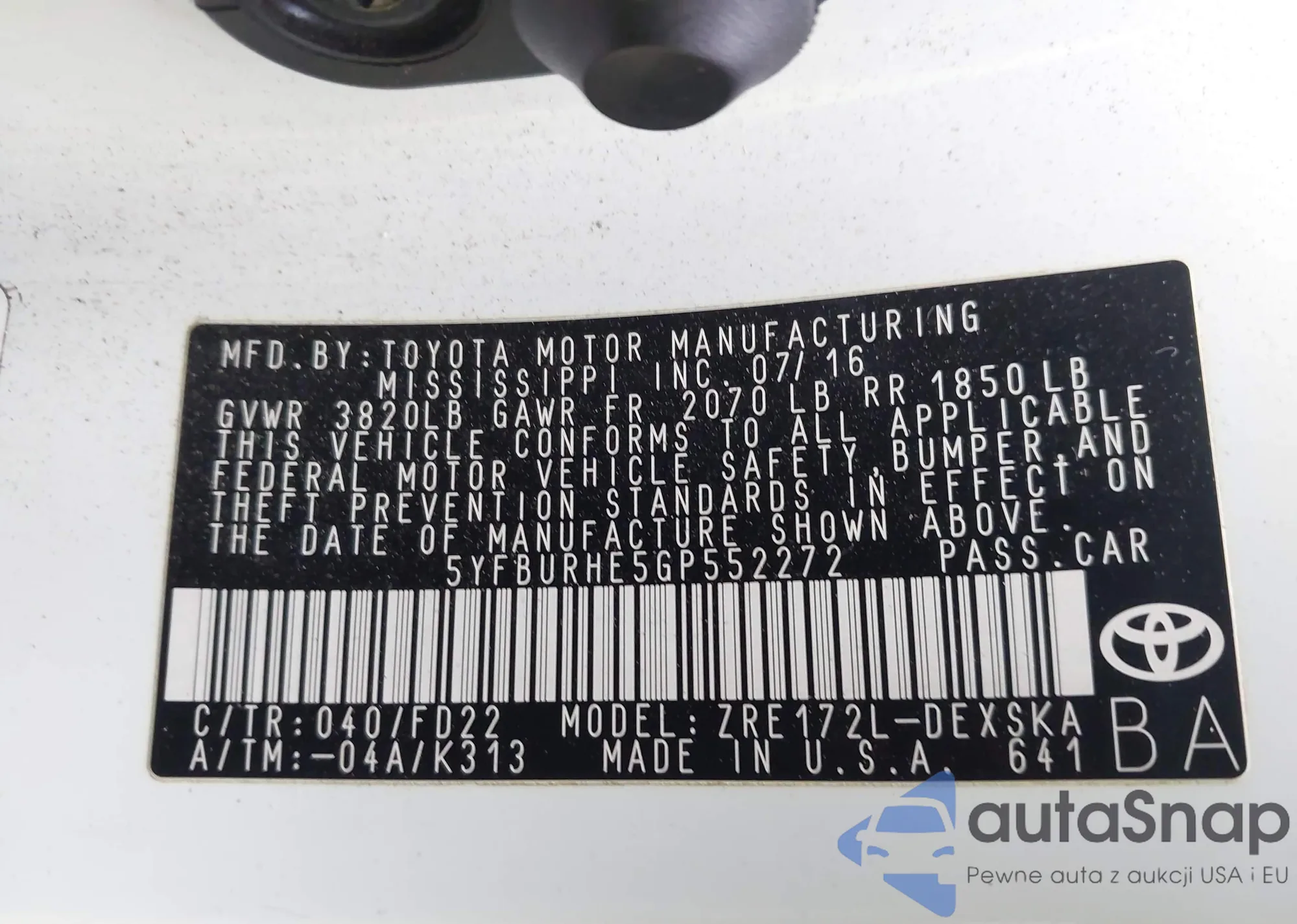 • VIN 5YFBURHE5GP552272