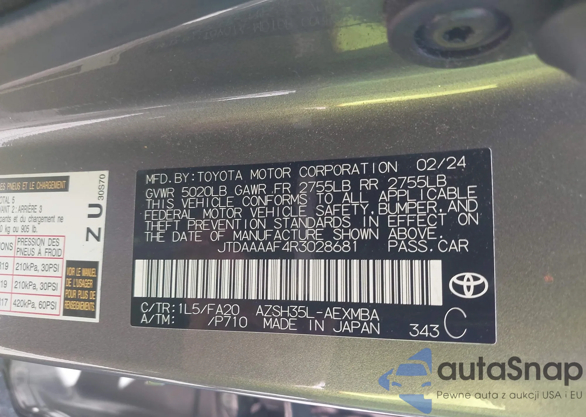LOT: 44398571 VIN: JTDAAAAF4R3028681