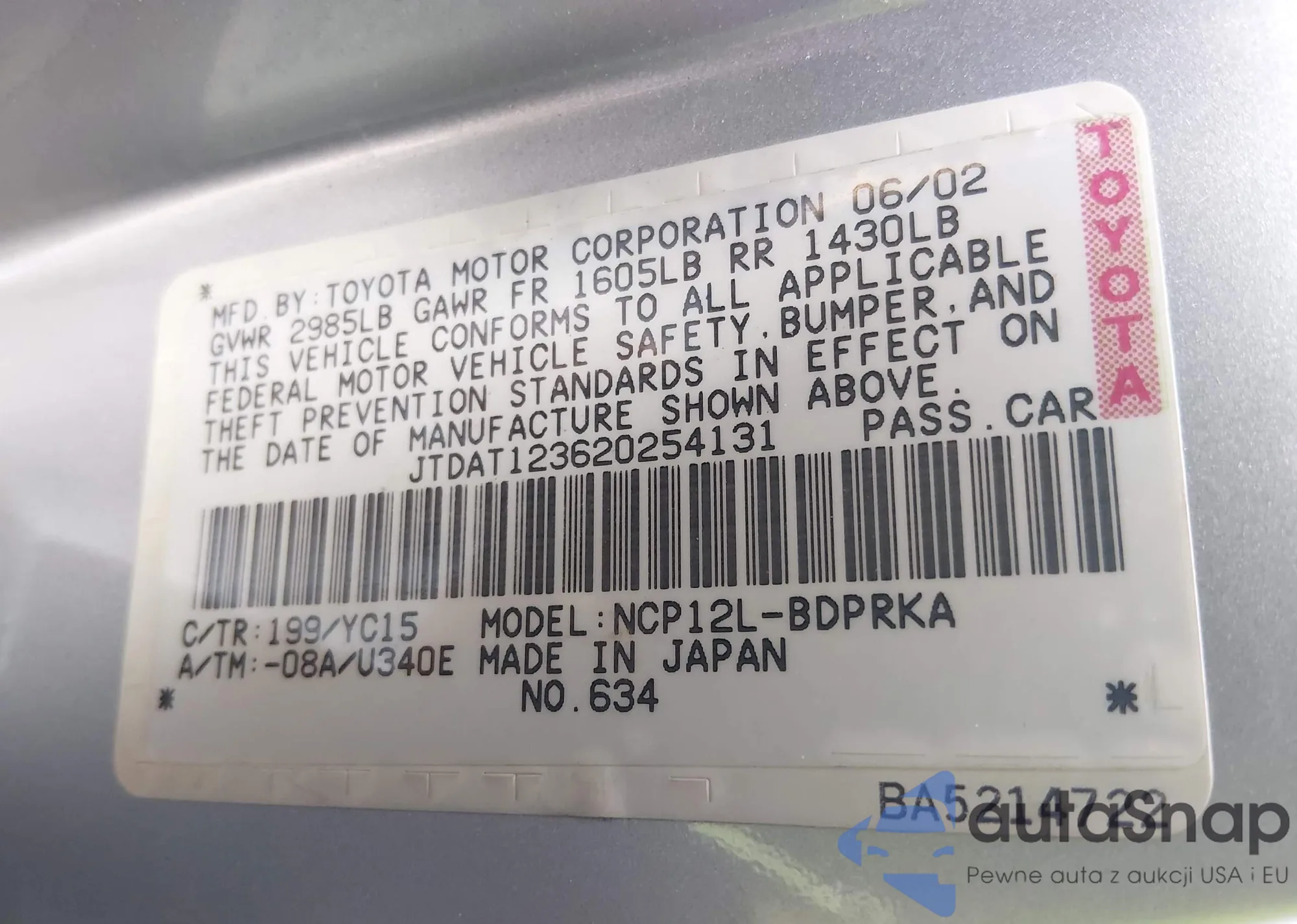 • VIN JTDAT123620254131