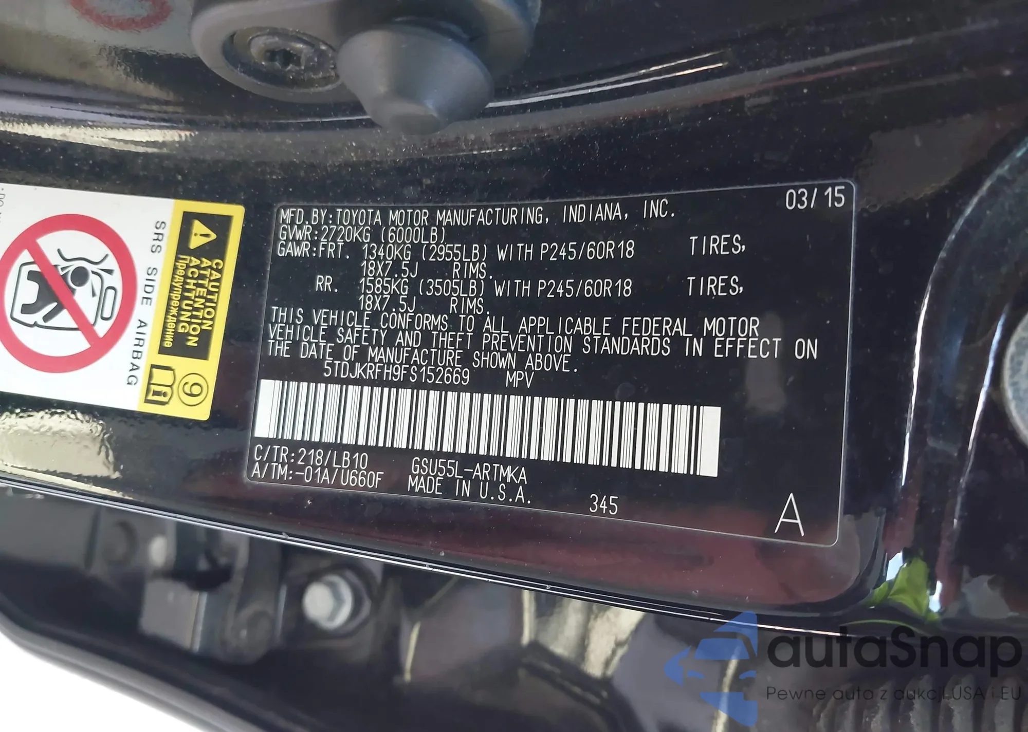 • VIN 5TDJKRFH9FS152669