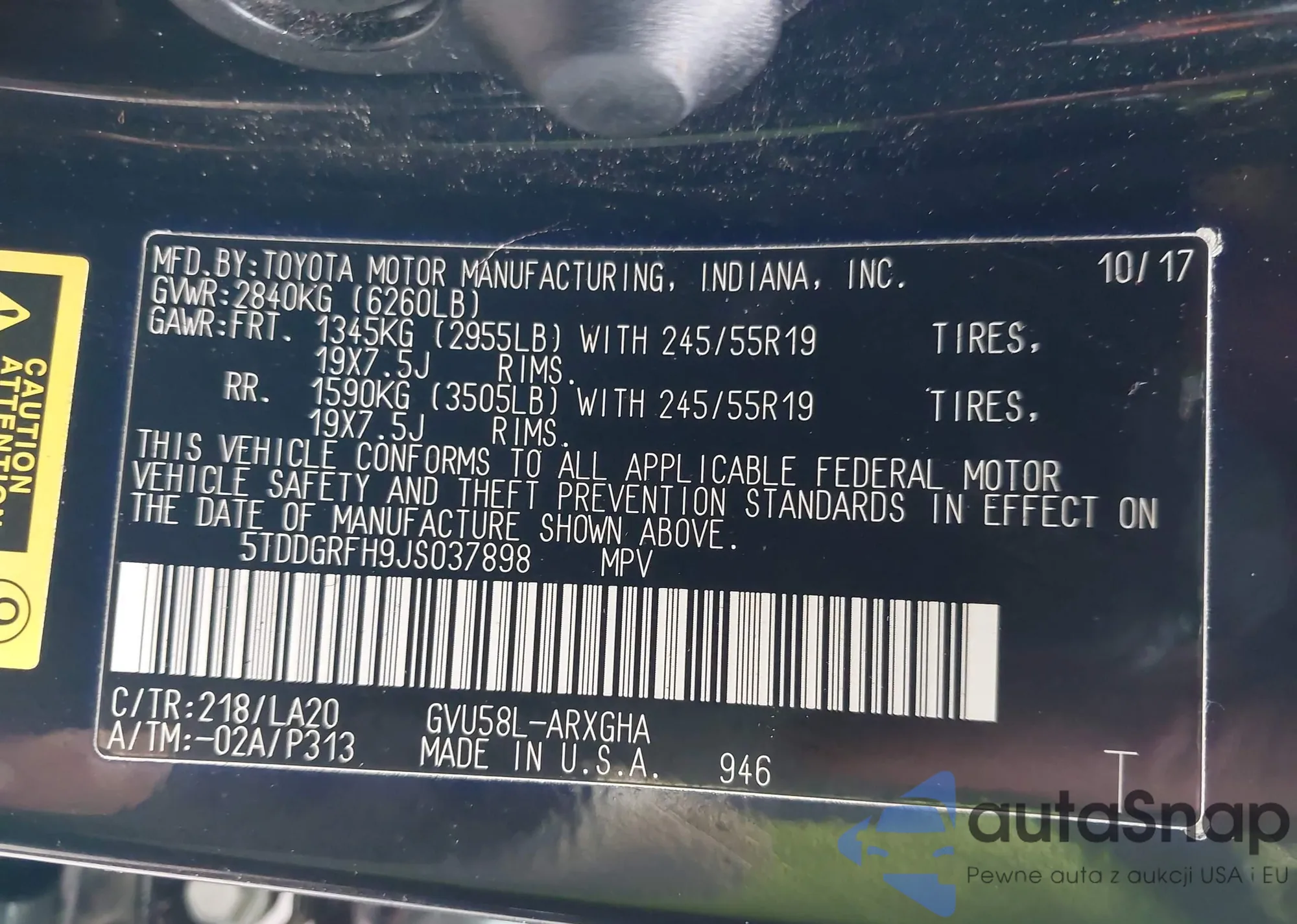 • VIN 5TDDGRFH9JS037898