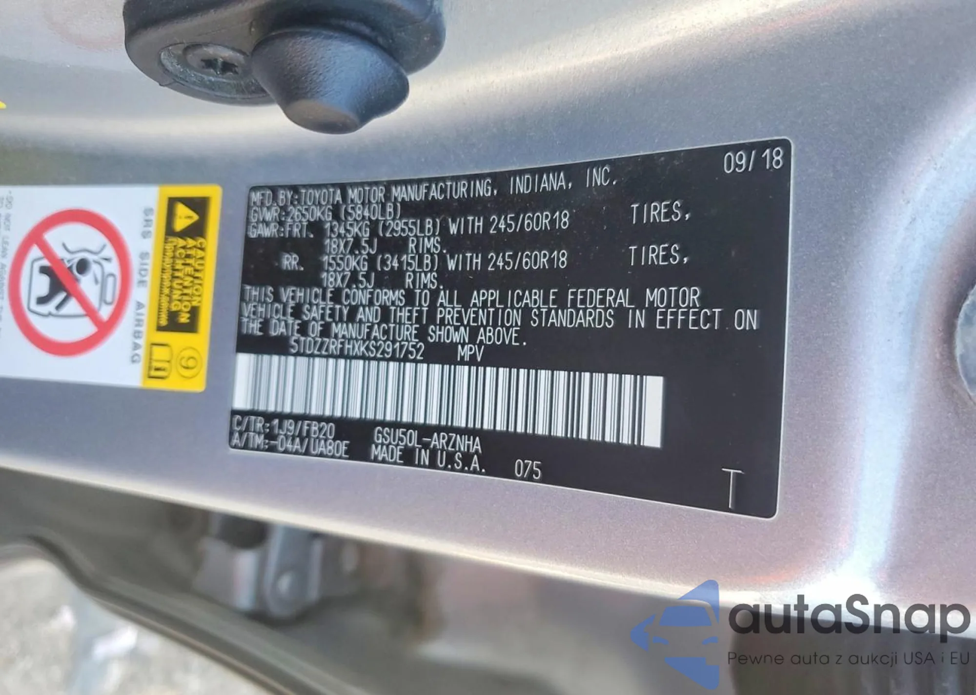 • VIN 5TDDZRFH2JS849344