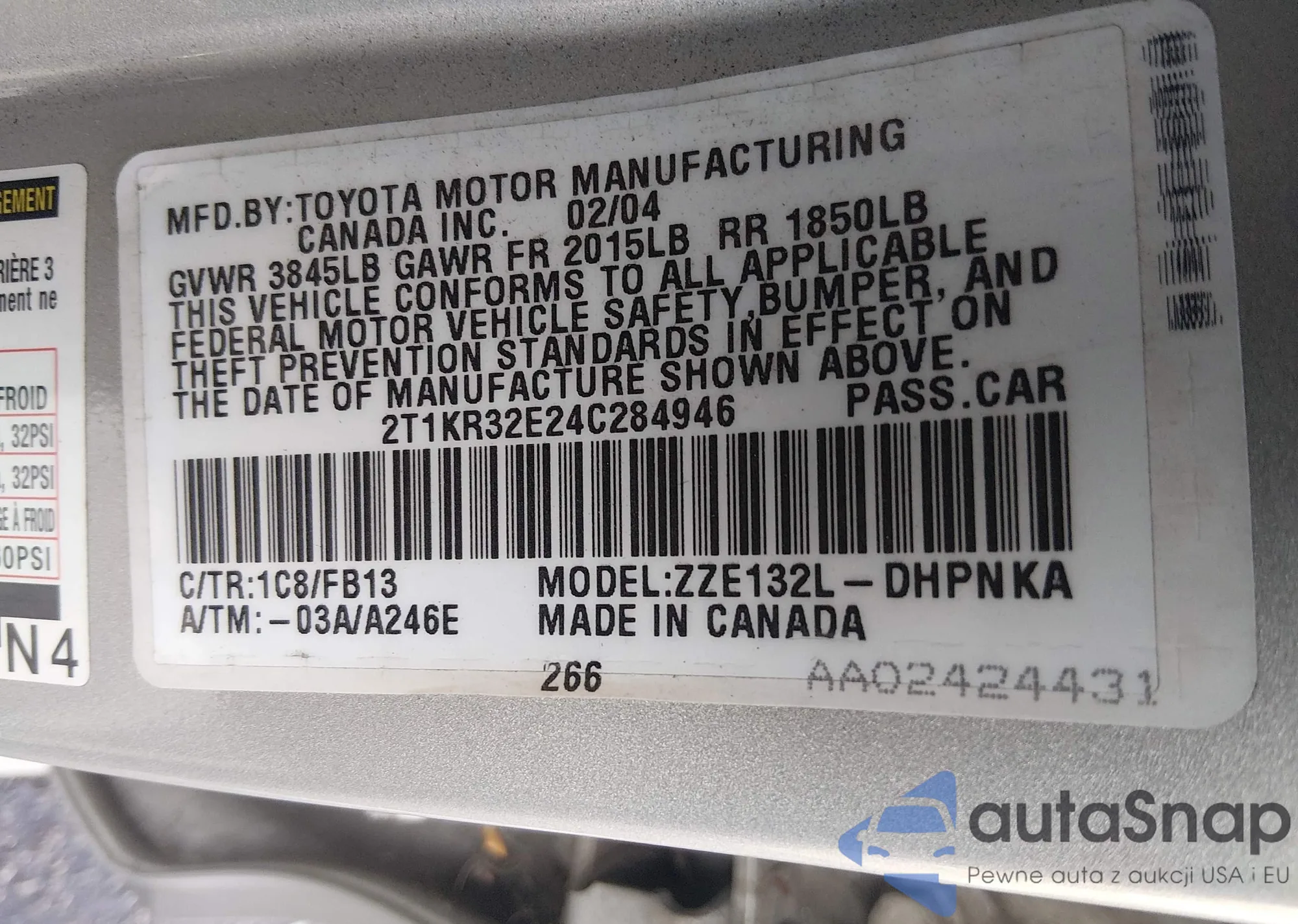 • VIN 2T1KR32E24C284946