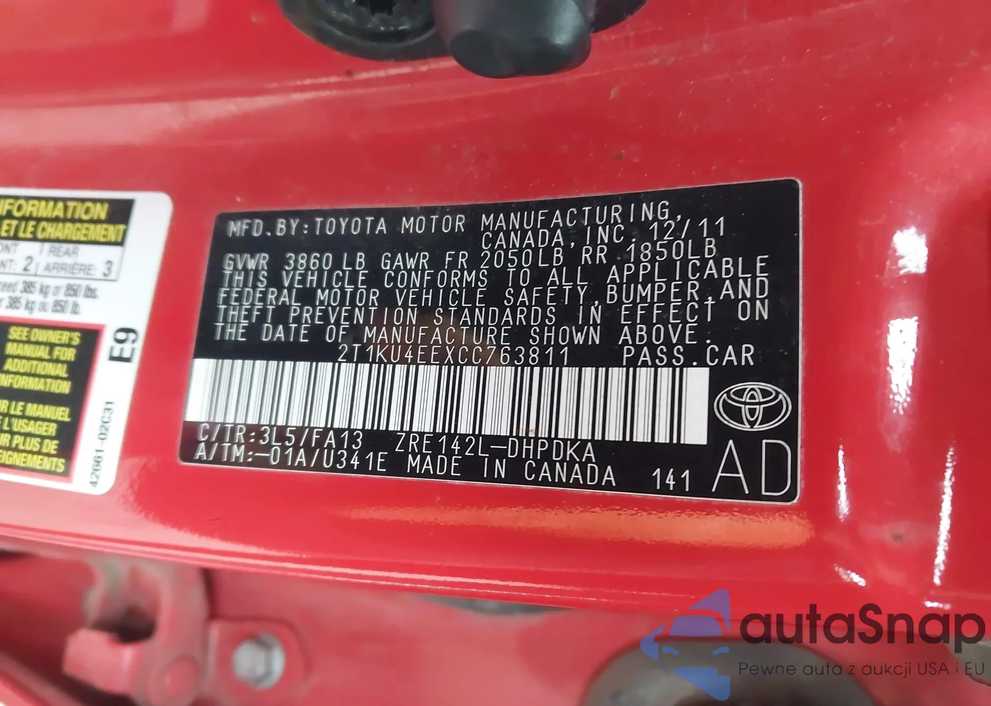 • VIN 2T1KU4EEXCC763811