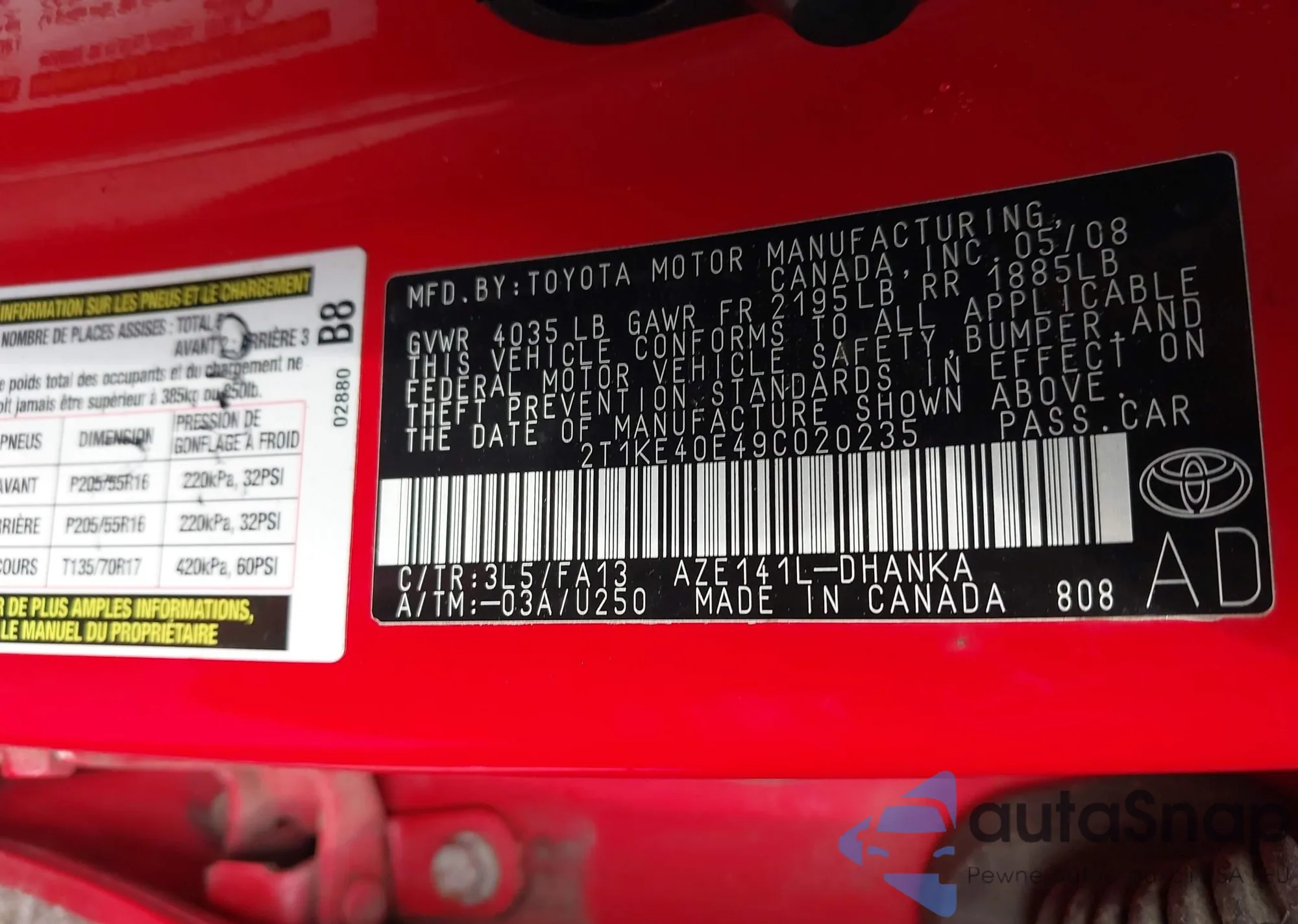 • VIN 2T1KE40E49C020235