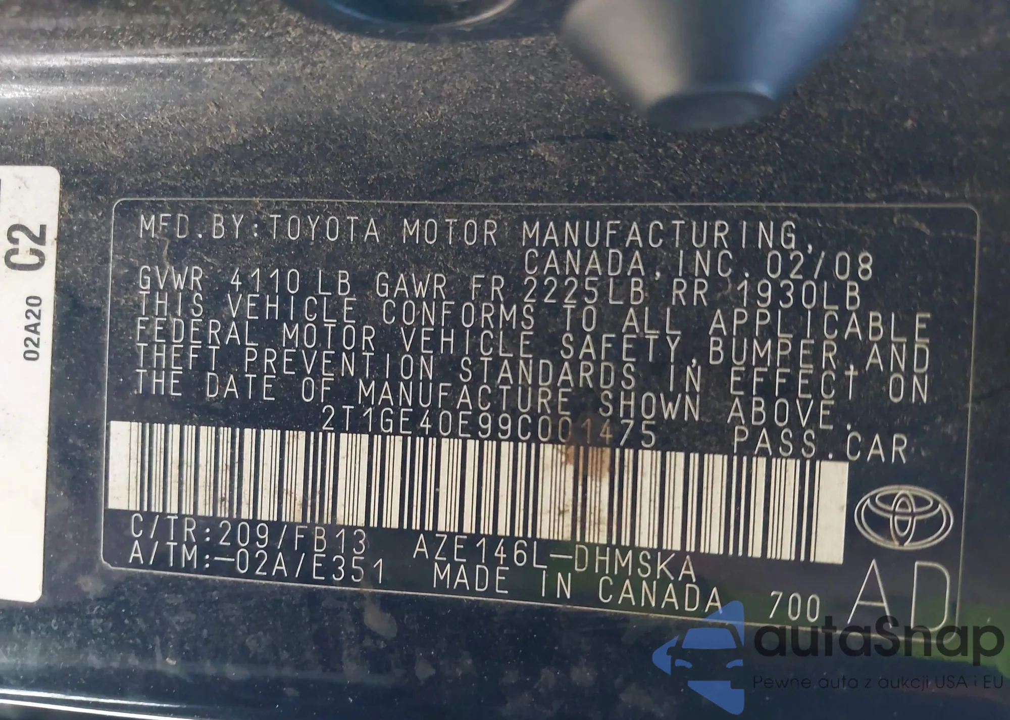 • VIN 2T1GE40E99C001475