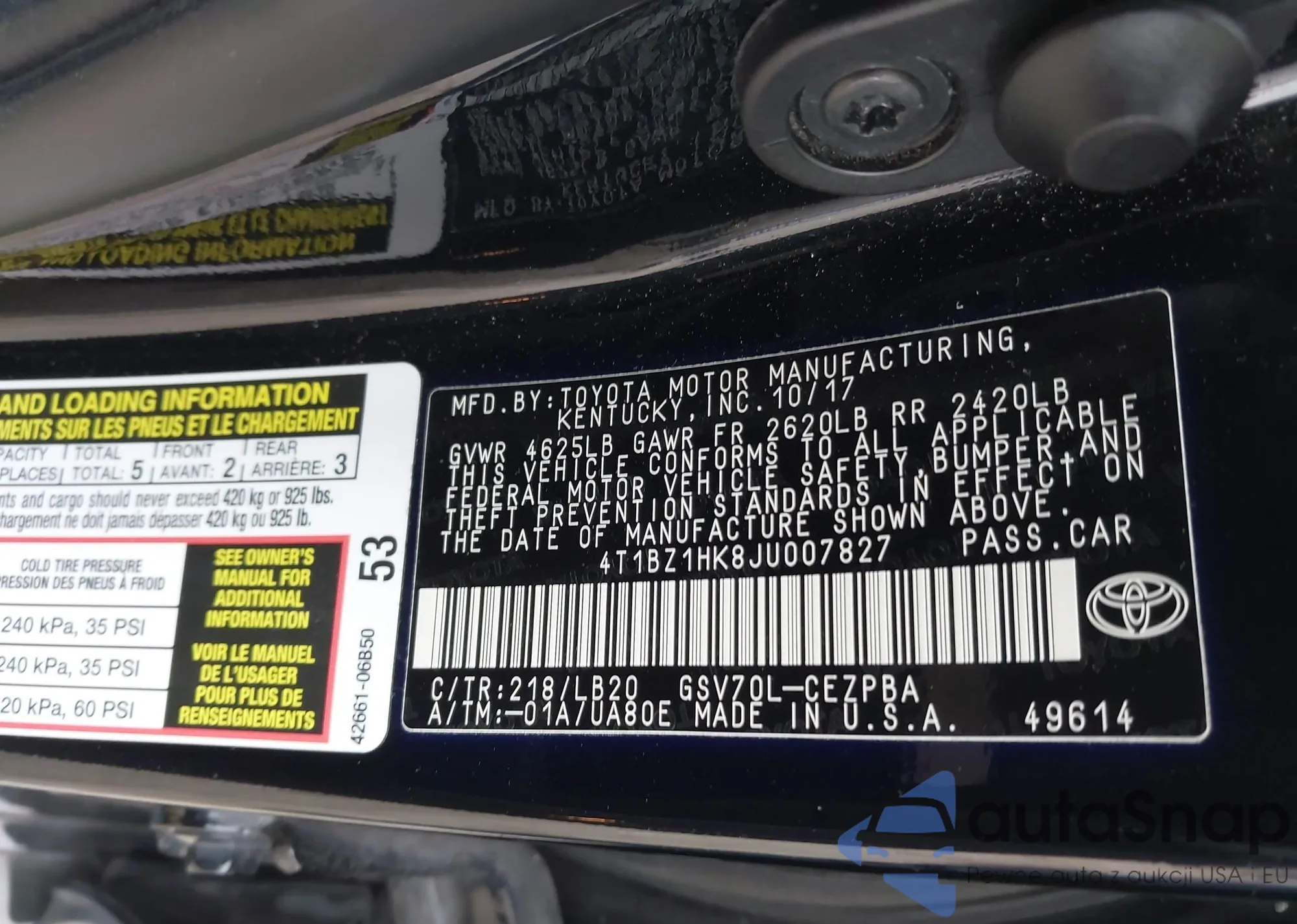 • VIN 4T1BZ1HK8JU007827