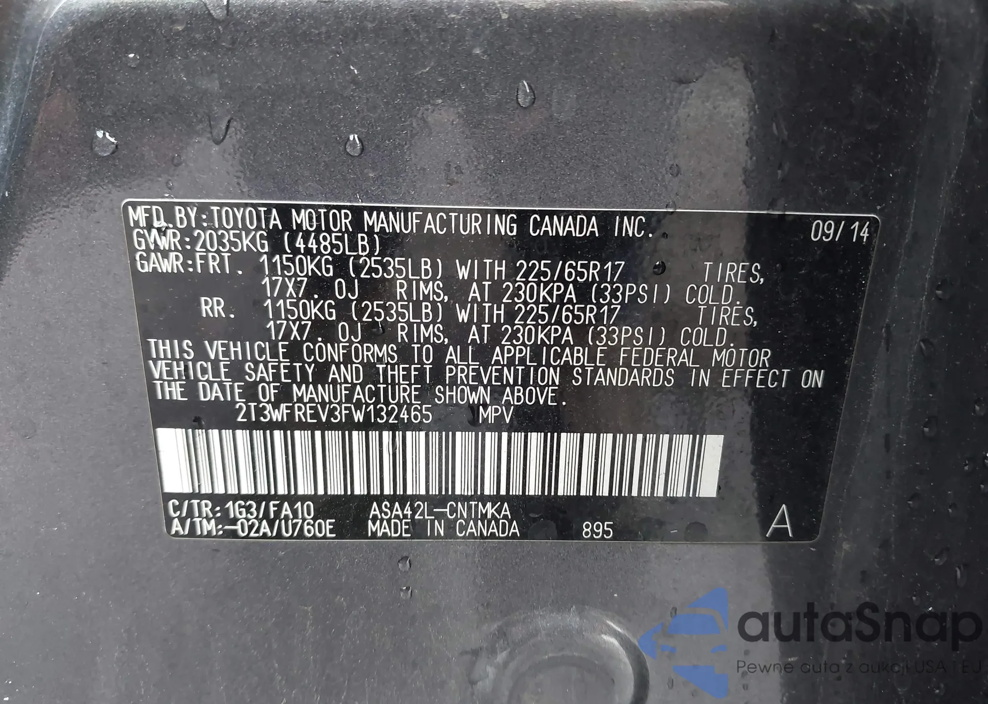 • VIN 2T3WFREV3FW132465