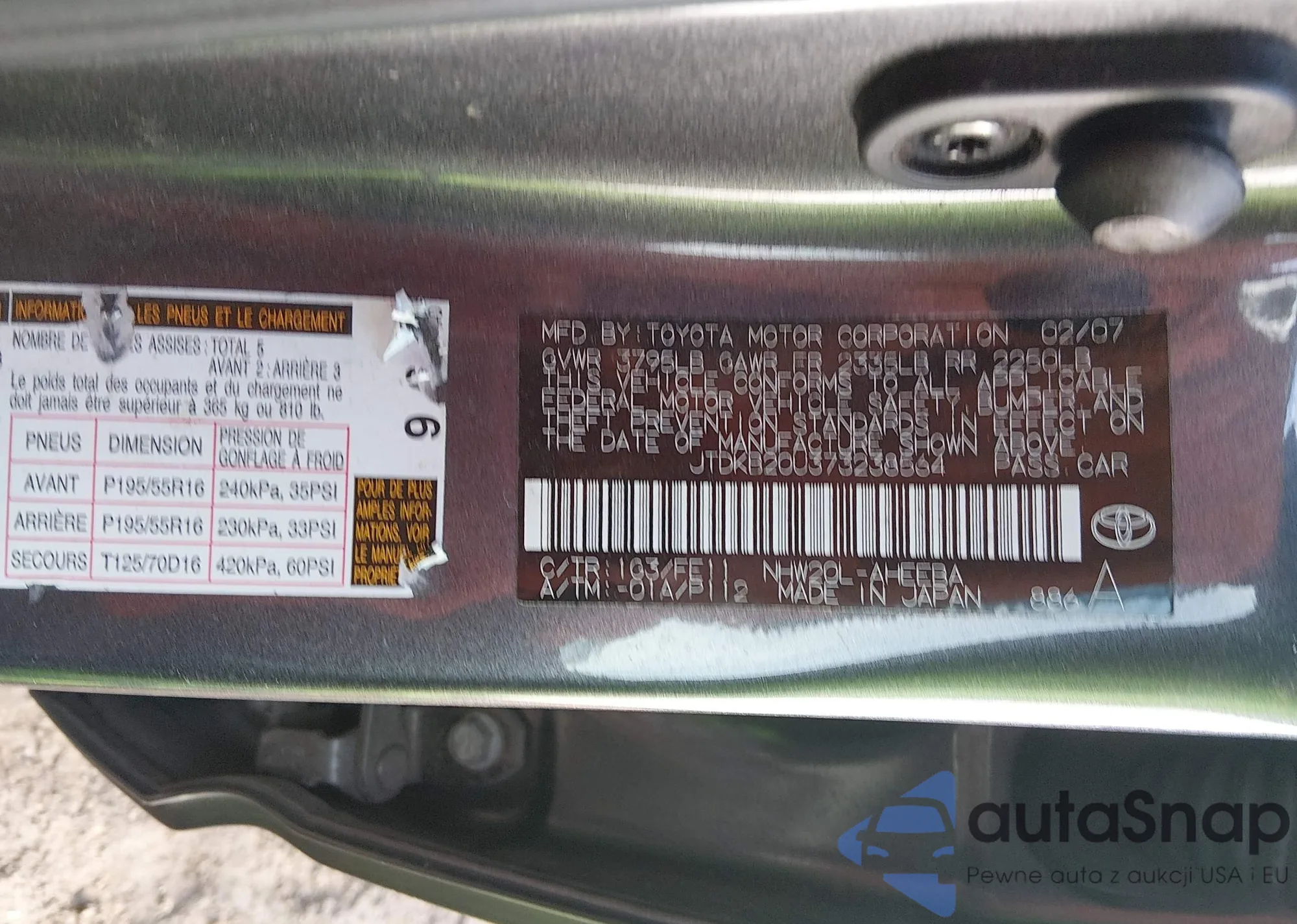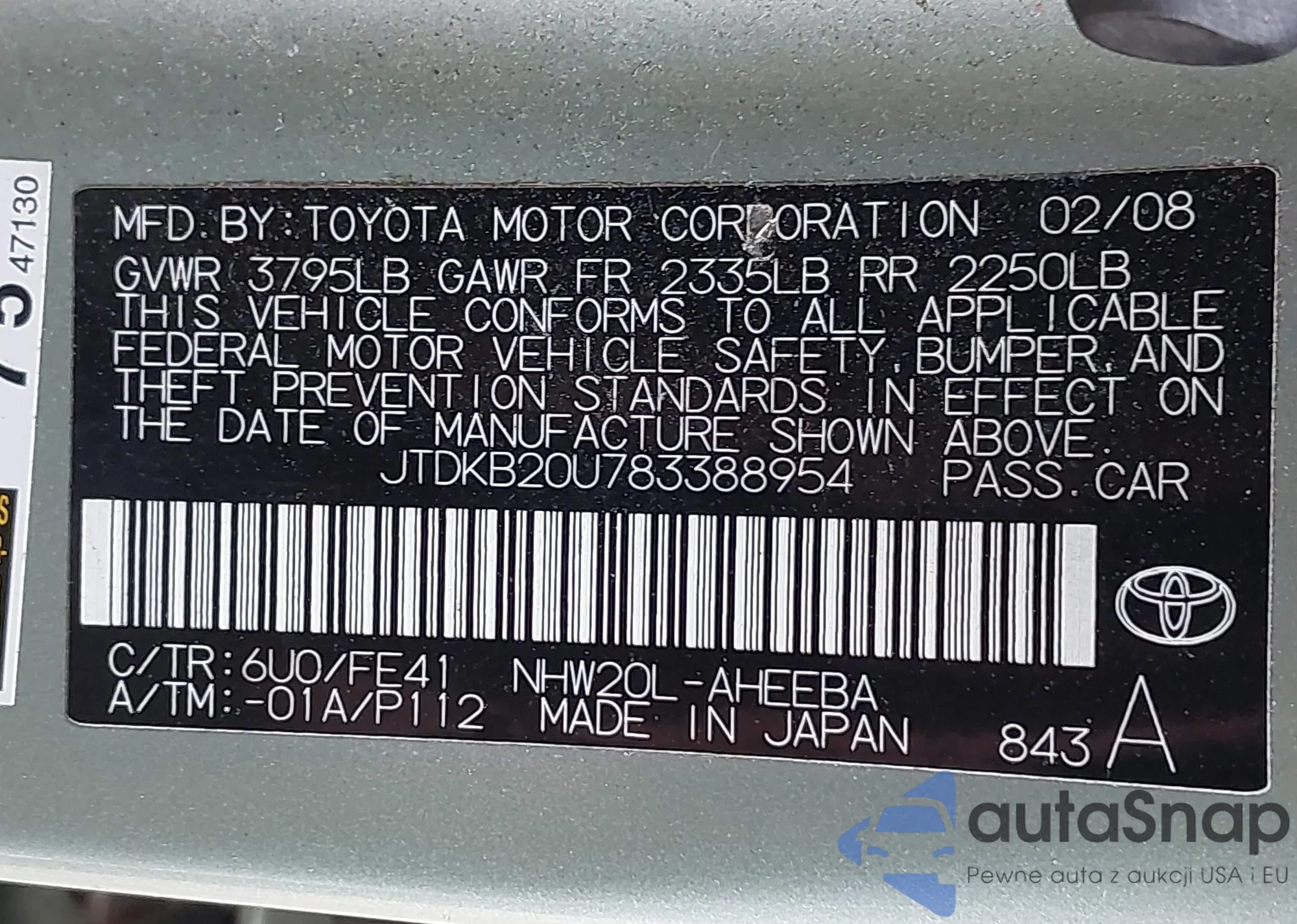 LOT: 43952301 VIN: JTDKB20U473269452