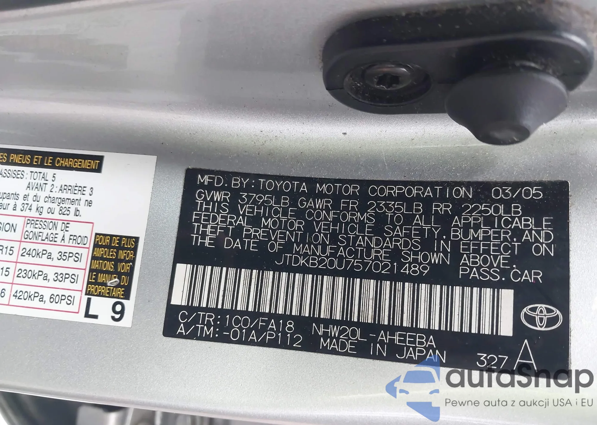 LOT: 44365022 VIN: JTDKB20U757021489