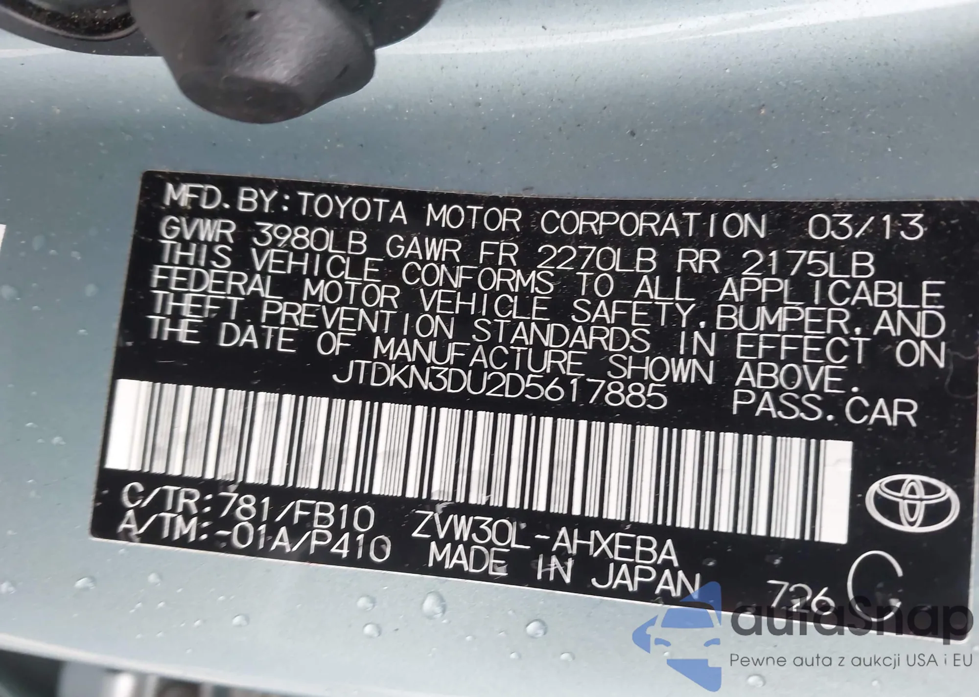 LOT: 44422767 VIN: JTDKN3DU2D5617885