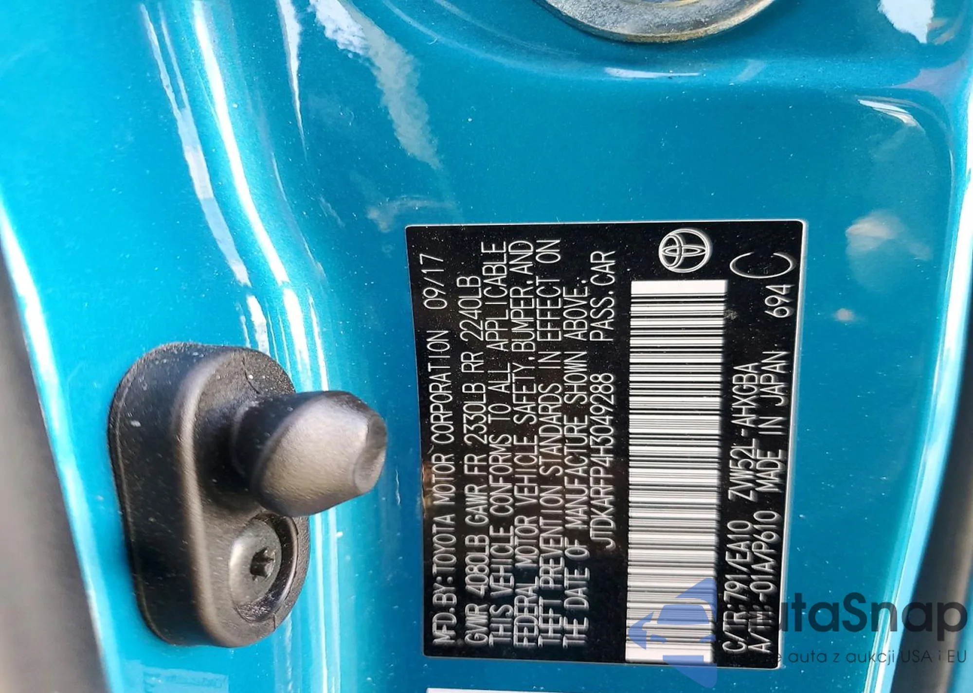 LOT: 73917655 VIN: JTDKARFP9H3067186