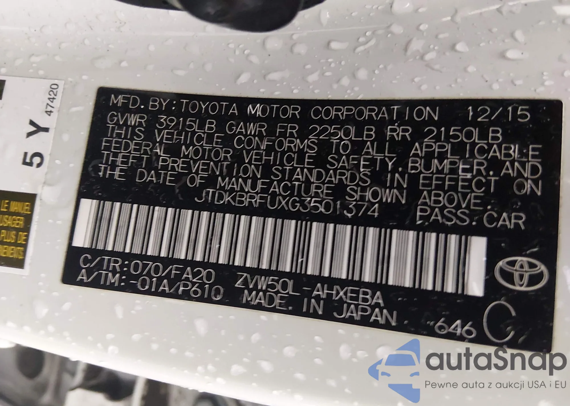 • VIN JTDKBRFUXG3501374