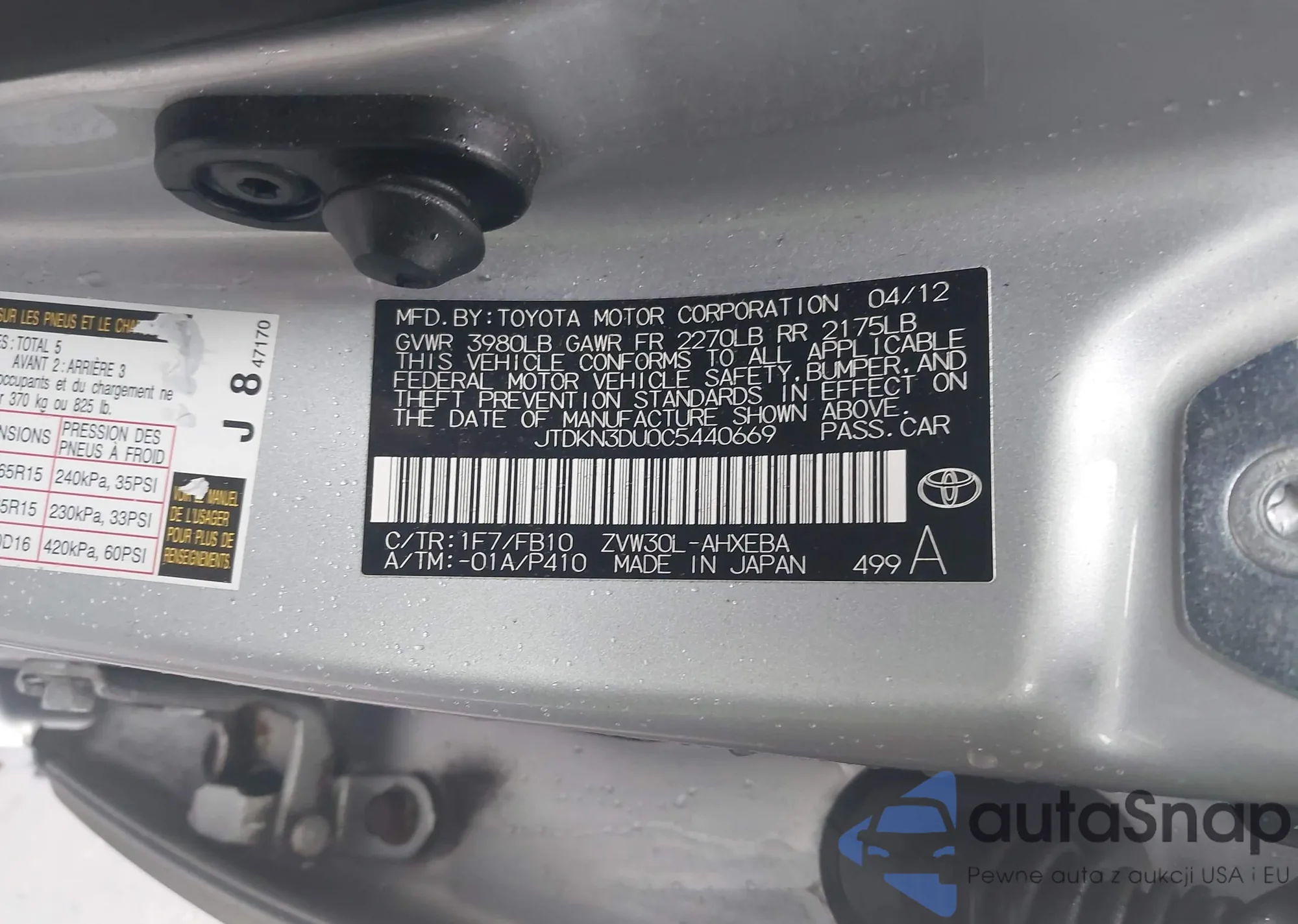 LOT: 44446078 VIN: JTDKN3DU0C5440669