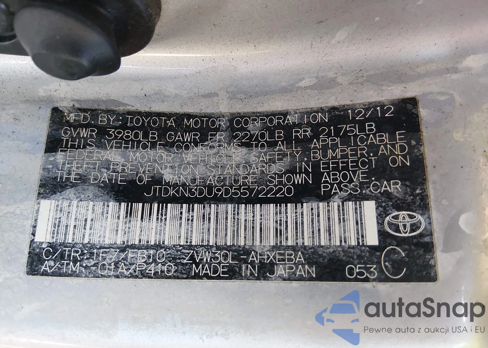 LOT: 44459860 VIN: JTDKN3DU9D5572220