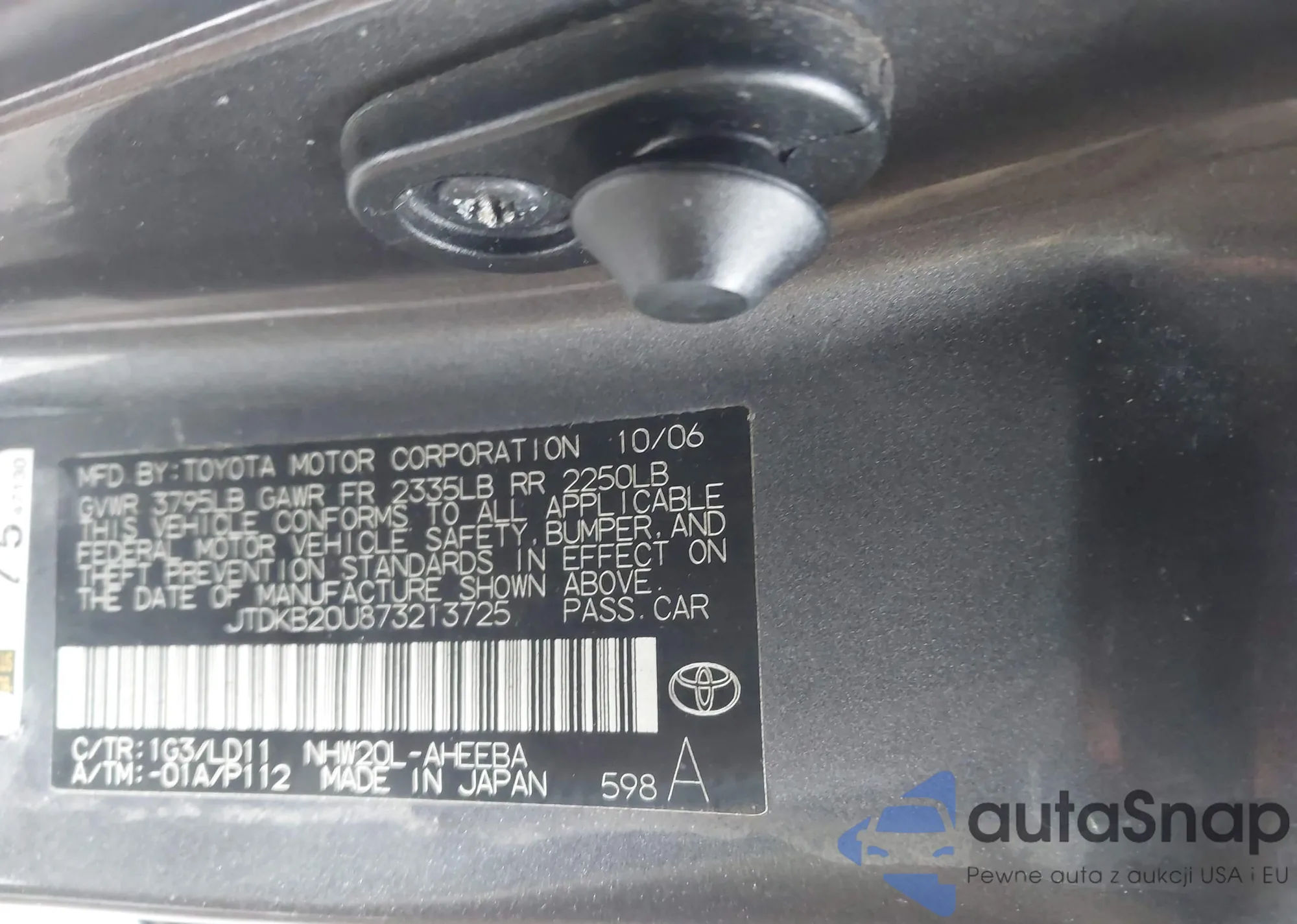 LOT: 44387300 VIN: JTDKB20U873213725