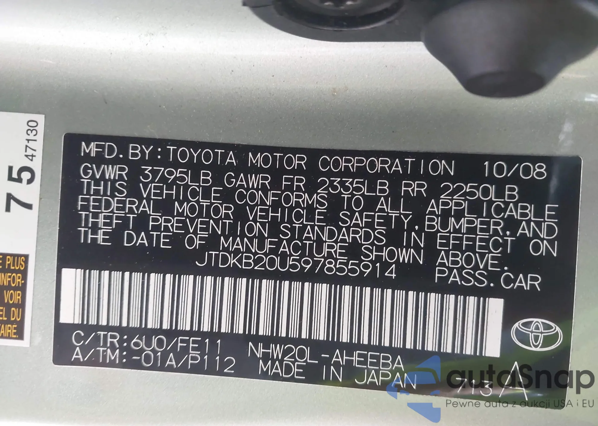 LOT: 44340665 VIN: JTDKB20U687743153