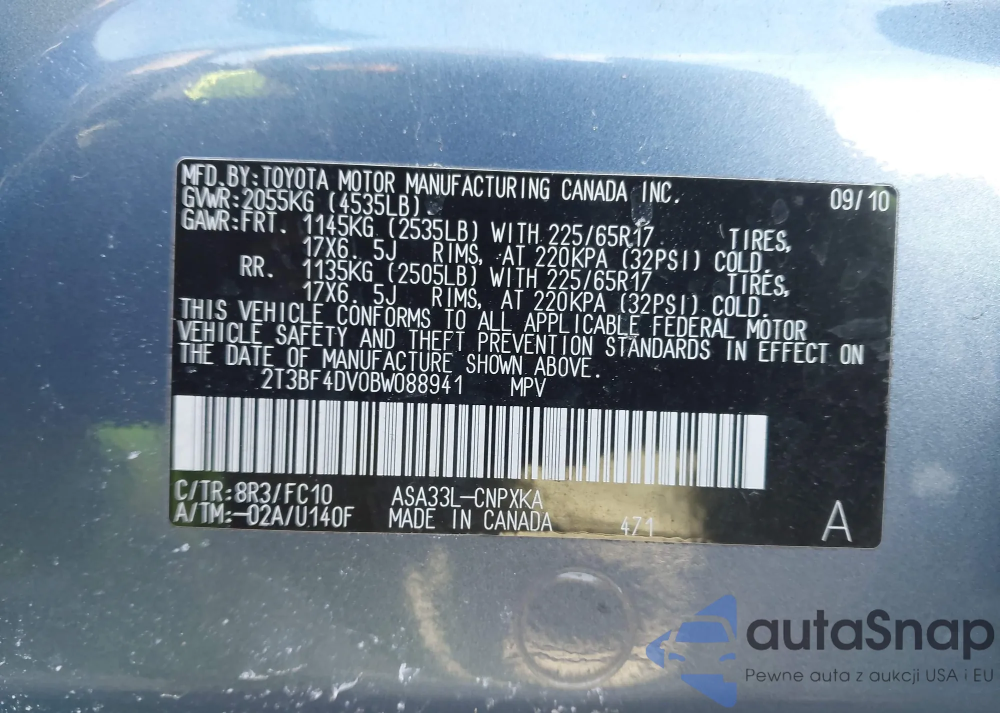 • VIN 2T3BF4DV0BW088941