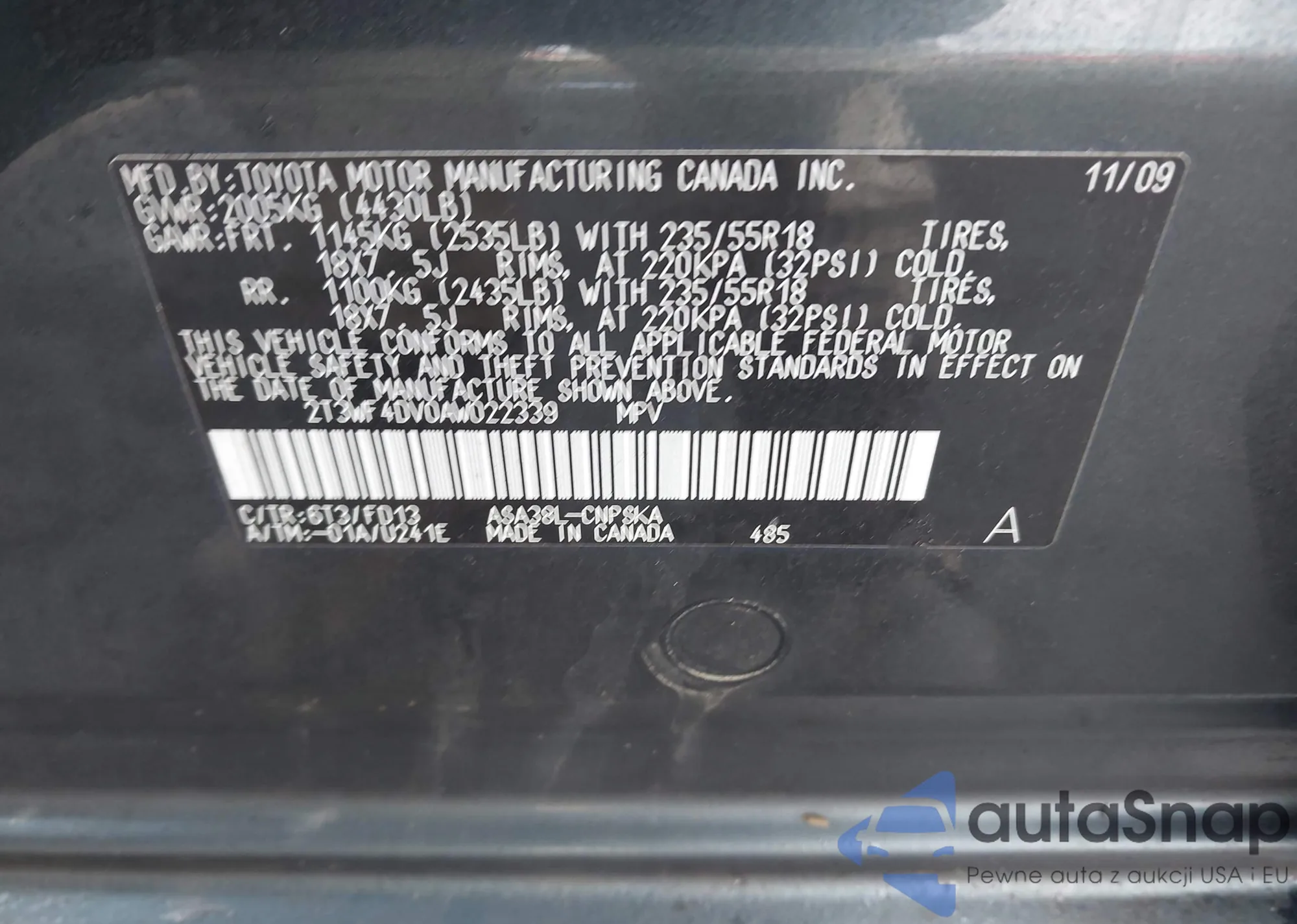 • VIN 2T3WF4DV0AW022339
