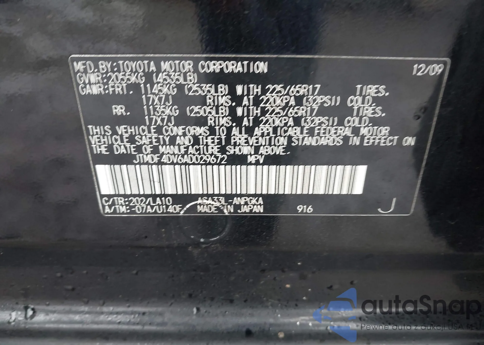 • VIN JTMDF4DV6AD029672