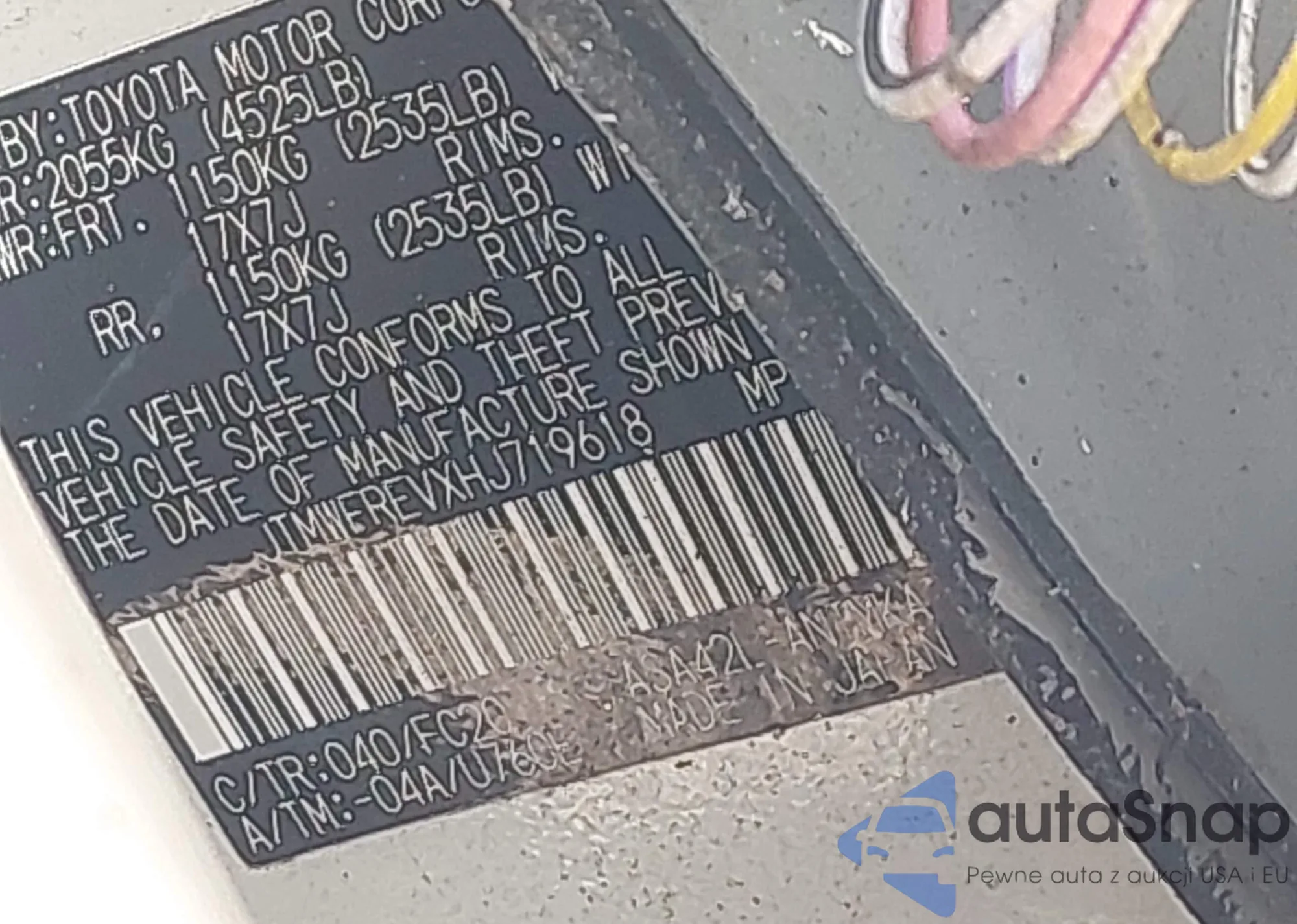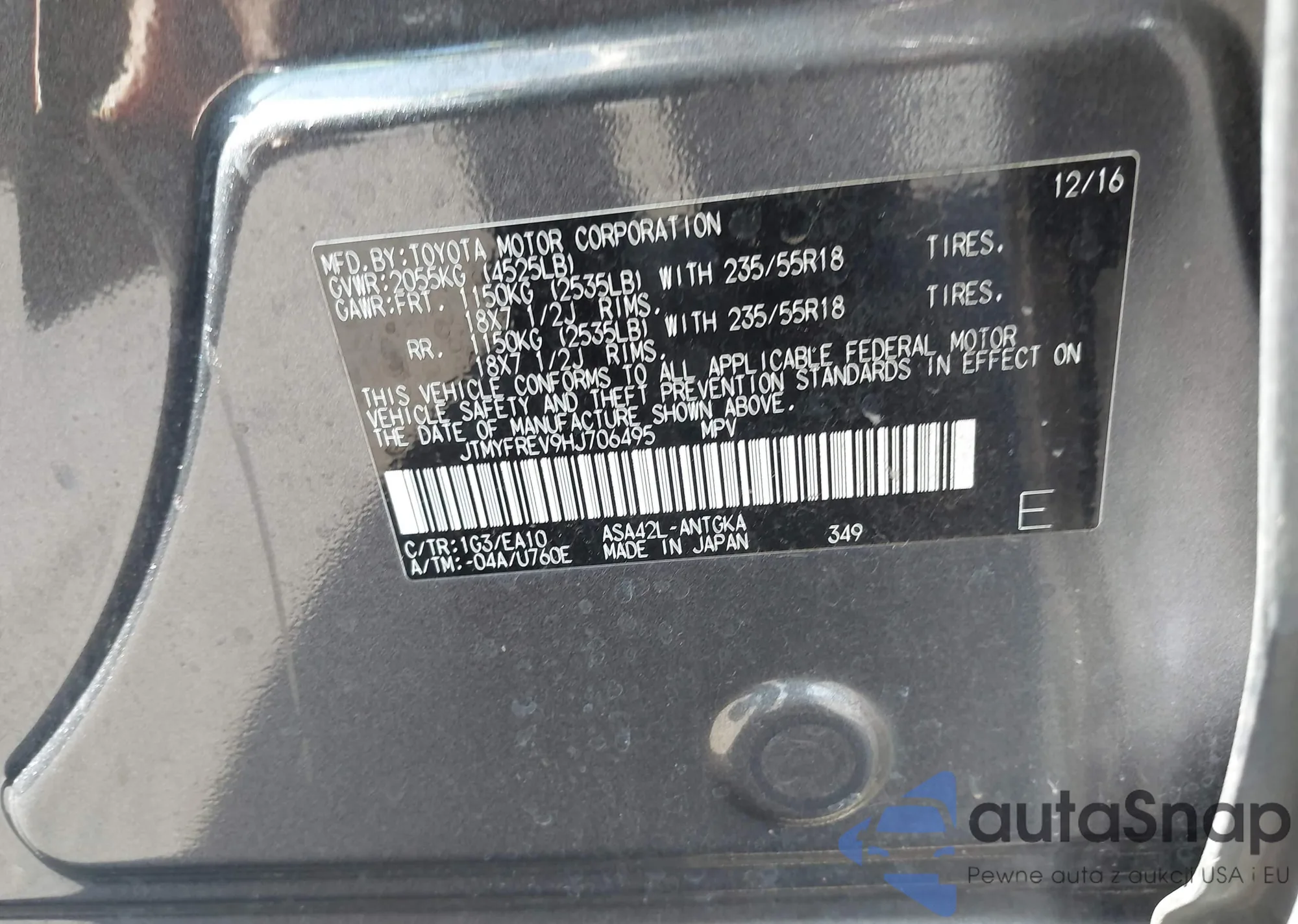 LOT: 42862271 VIN: JTMYFREV9HJ706495
