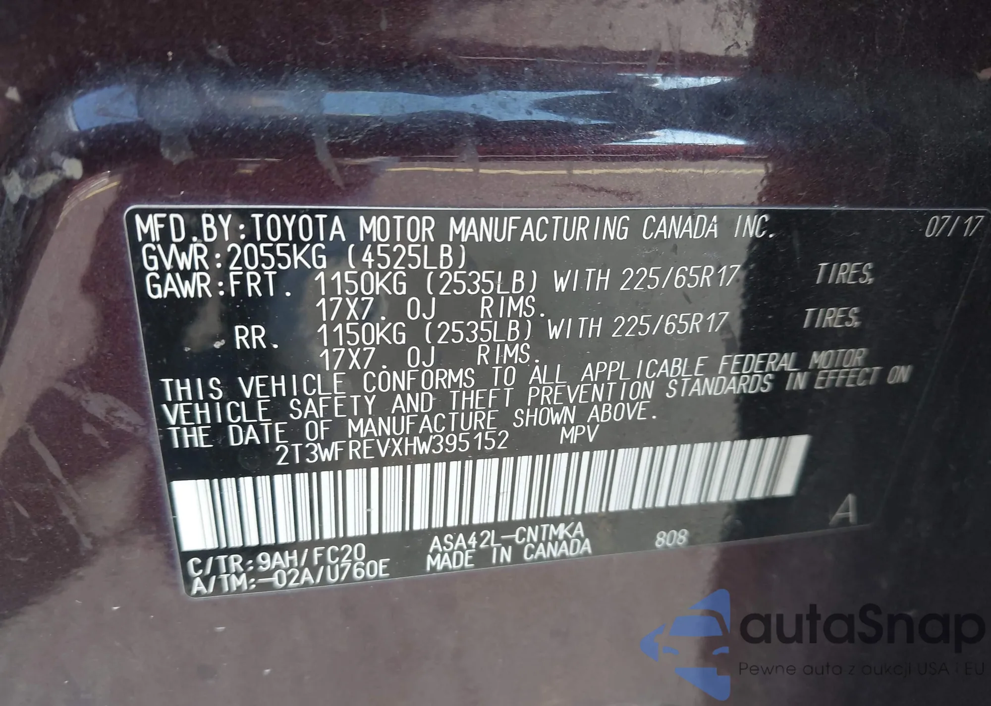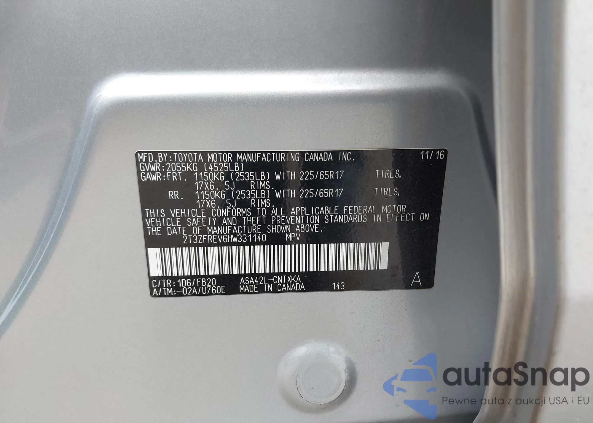 • VIN 2T3ZFREV6HW331140