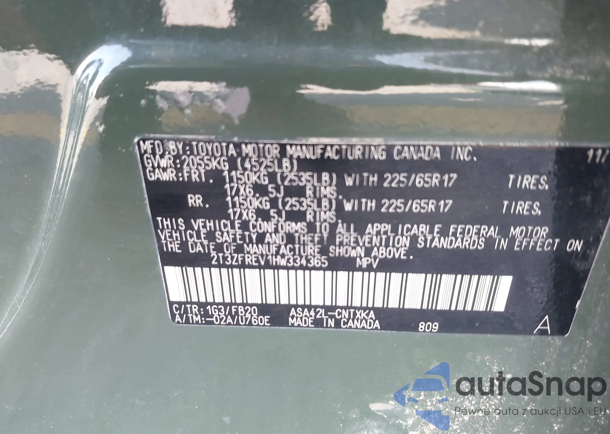 • VIN 2T3ZFREV1HW334365