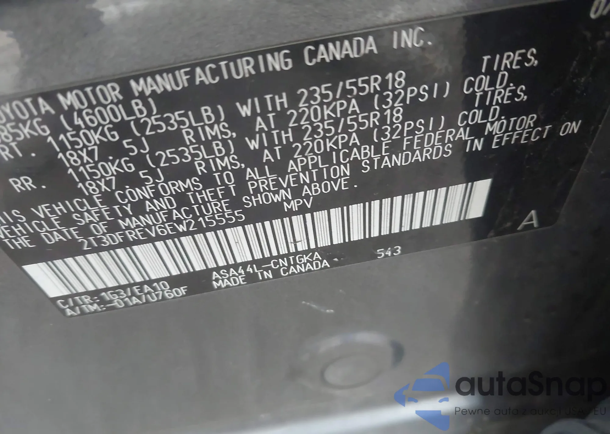 • VIN 2T3DFREV6EW215555