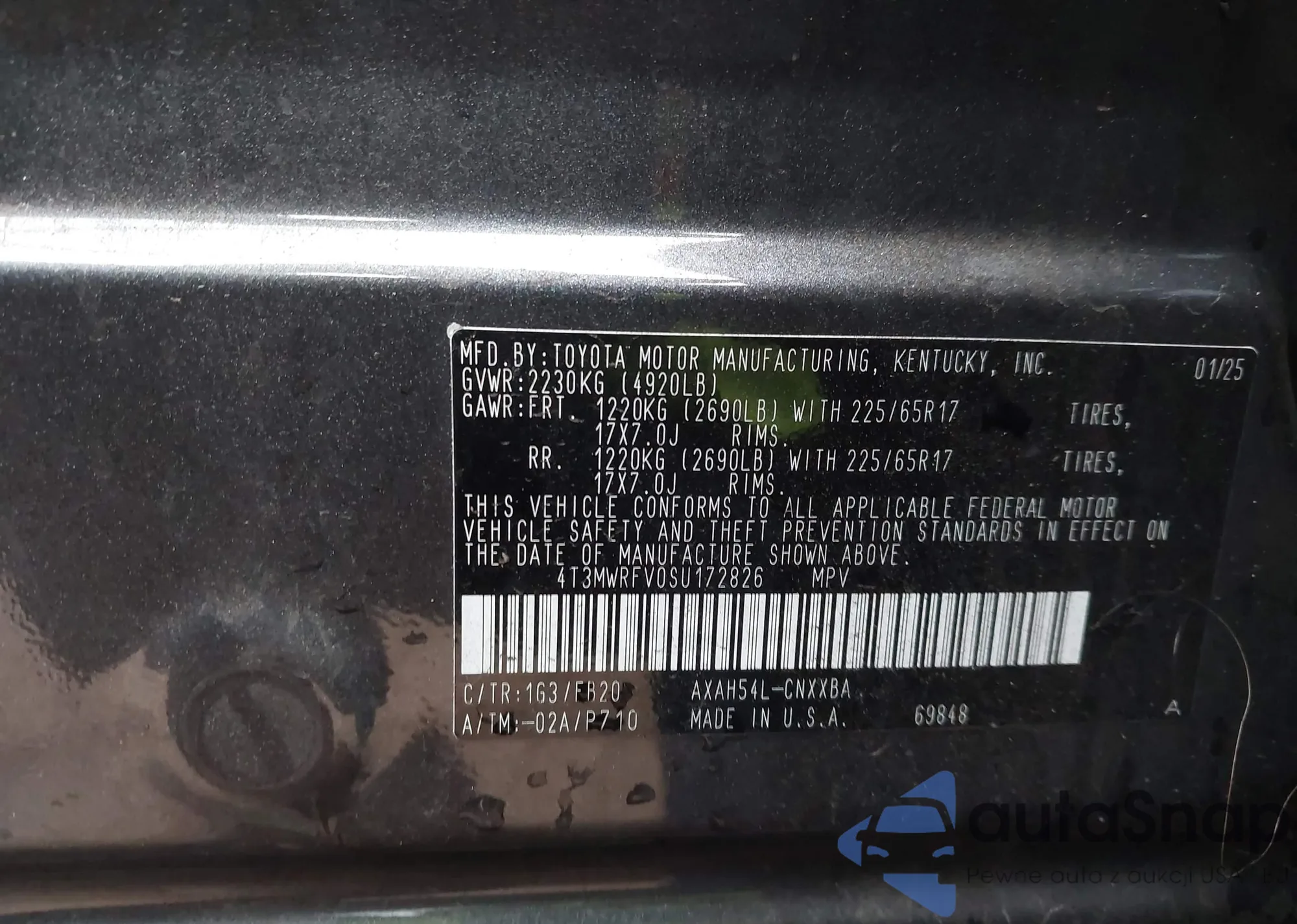 • VIN 4T3MWRFV0SU172826
