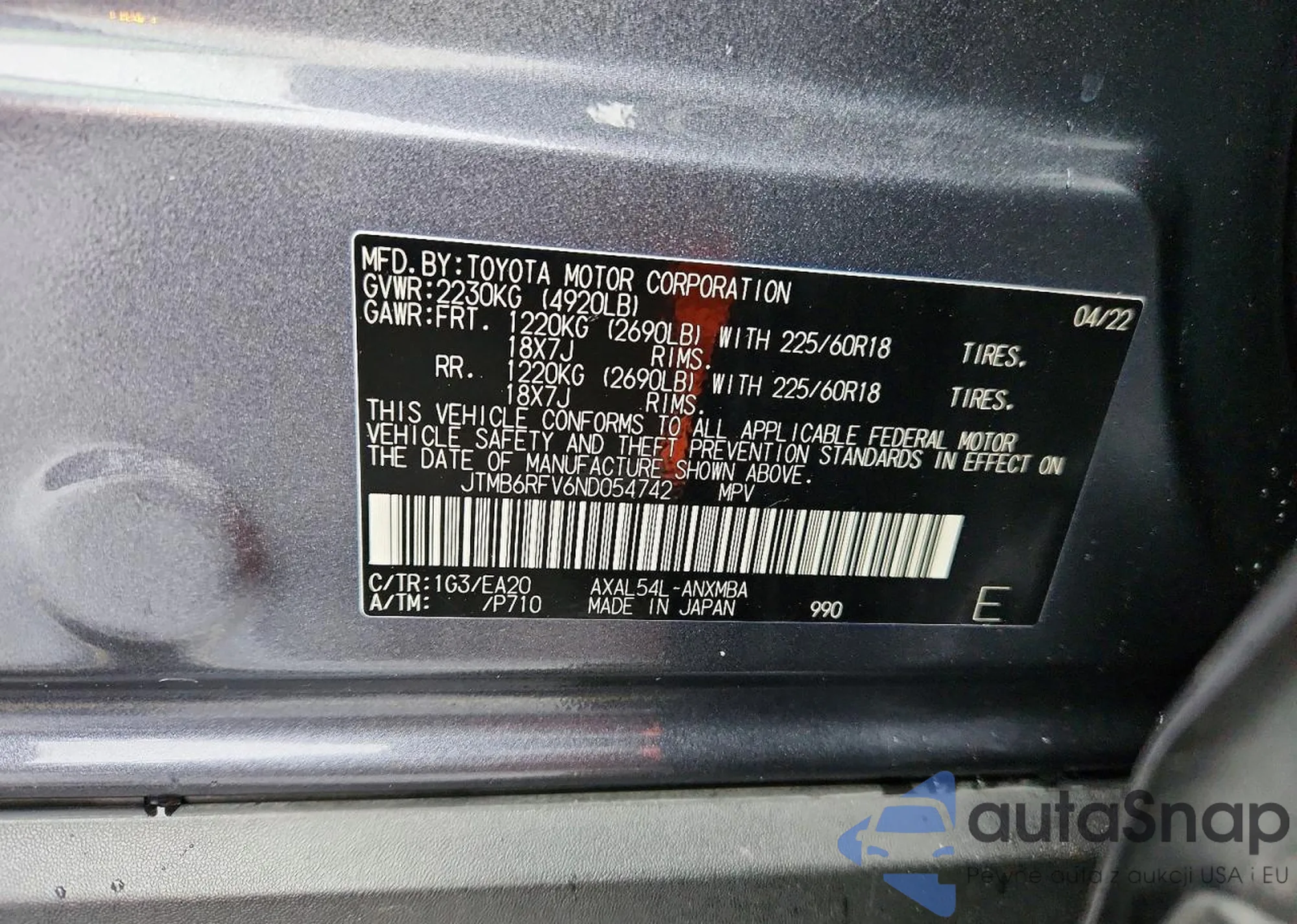 • VIN JTMB6RFV6ND054742
