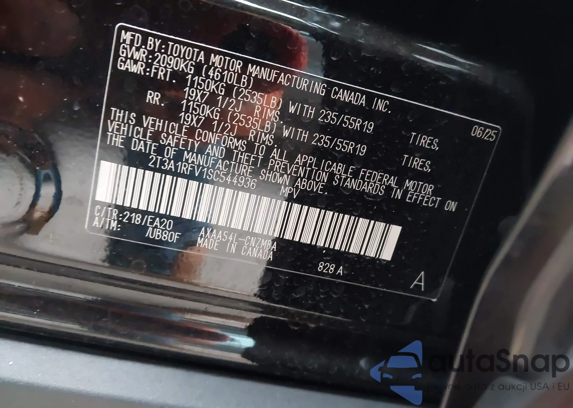 LOT: 43729156 VIN: 2T3A1RFV1SC544936