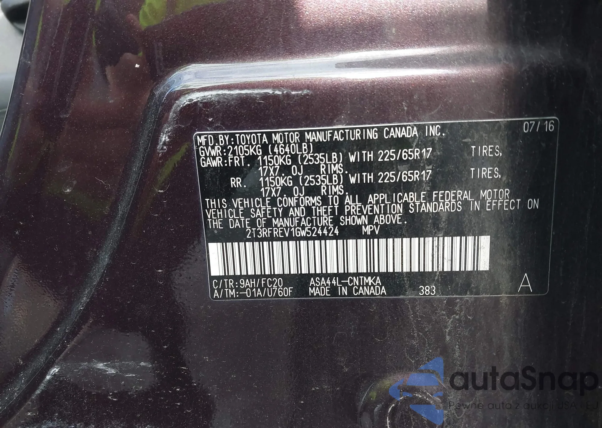 • VIN 2T3RFREV1GW524424