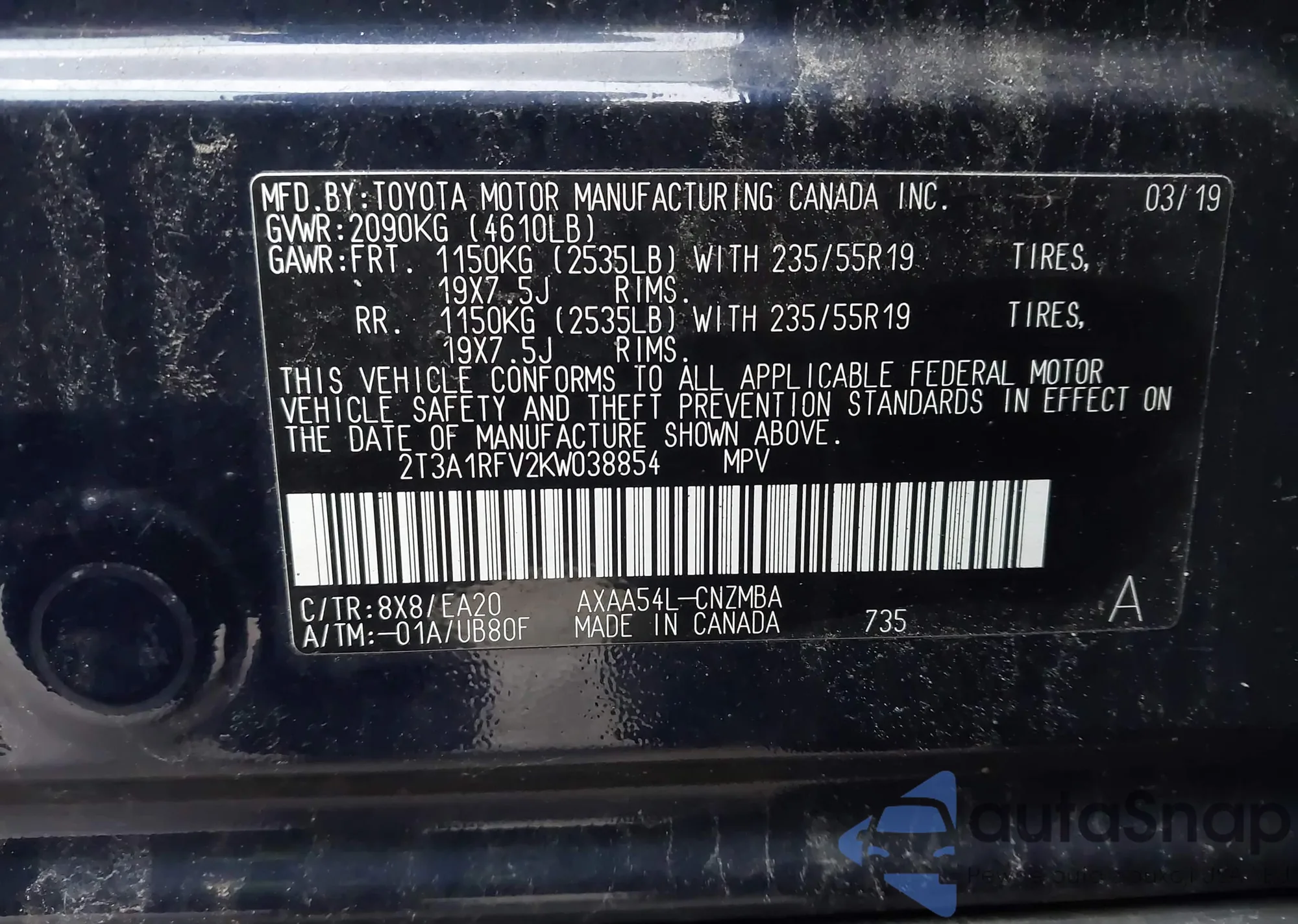 • VIN 2T3A1RFV2KW038854