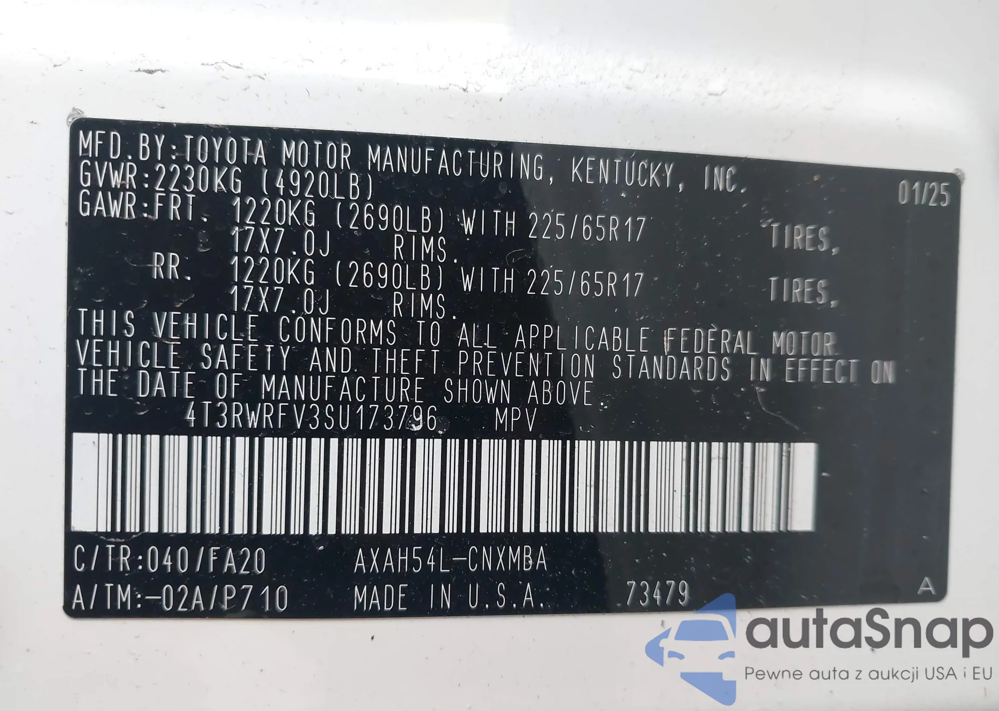 • VIN 4T3RWRFV3SU173796