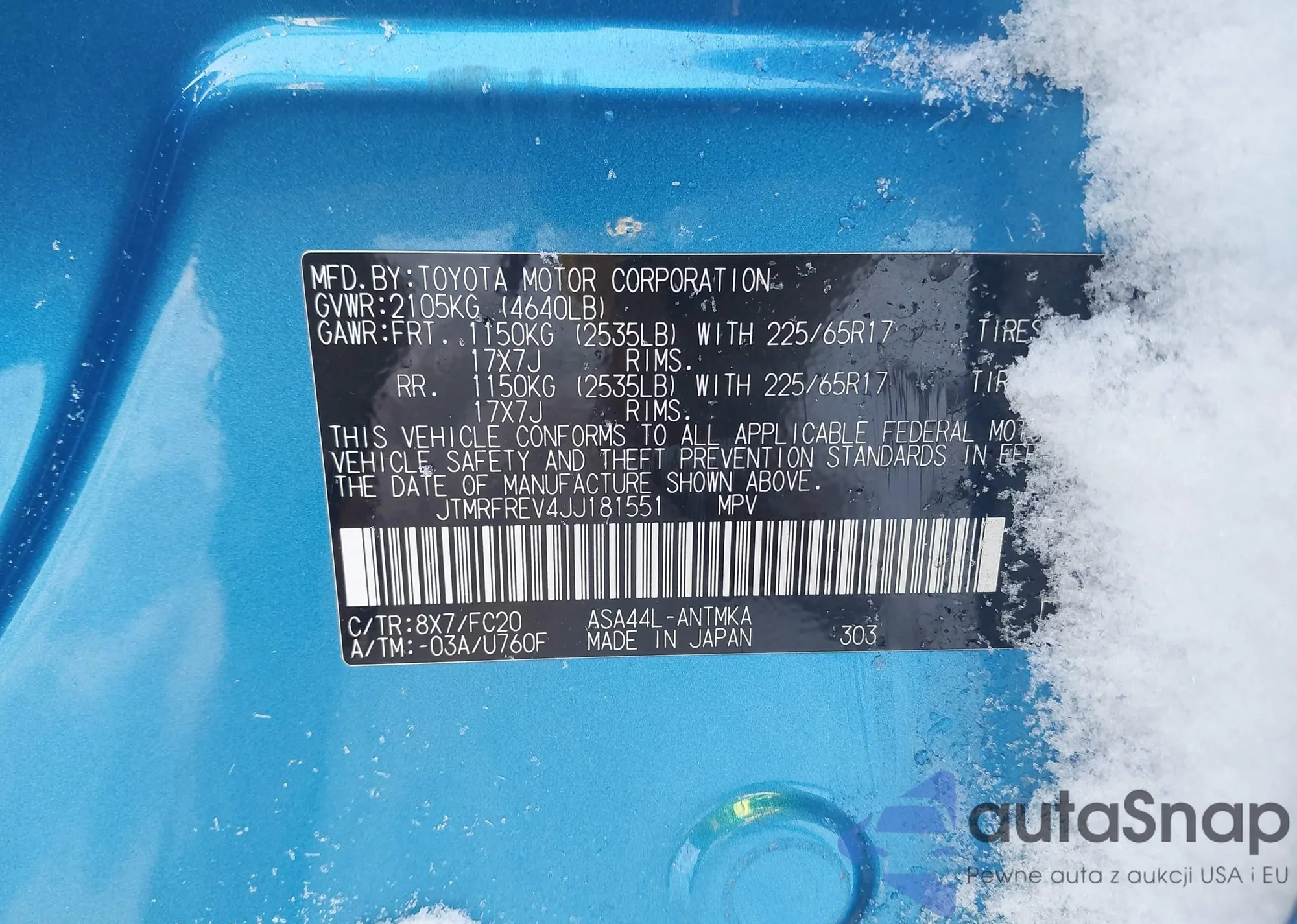 LOT: 44172356 VIN: JTMRFREV4JJ181551