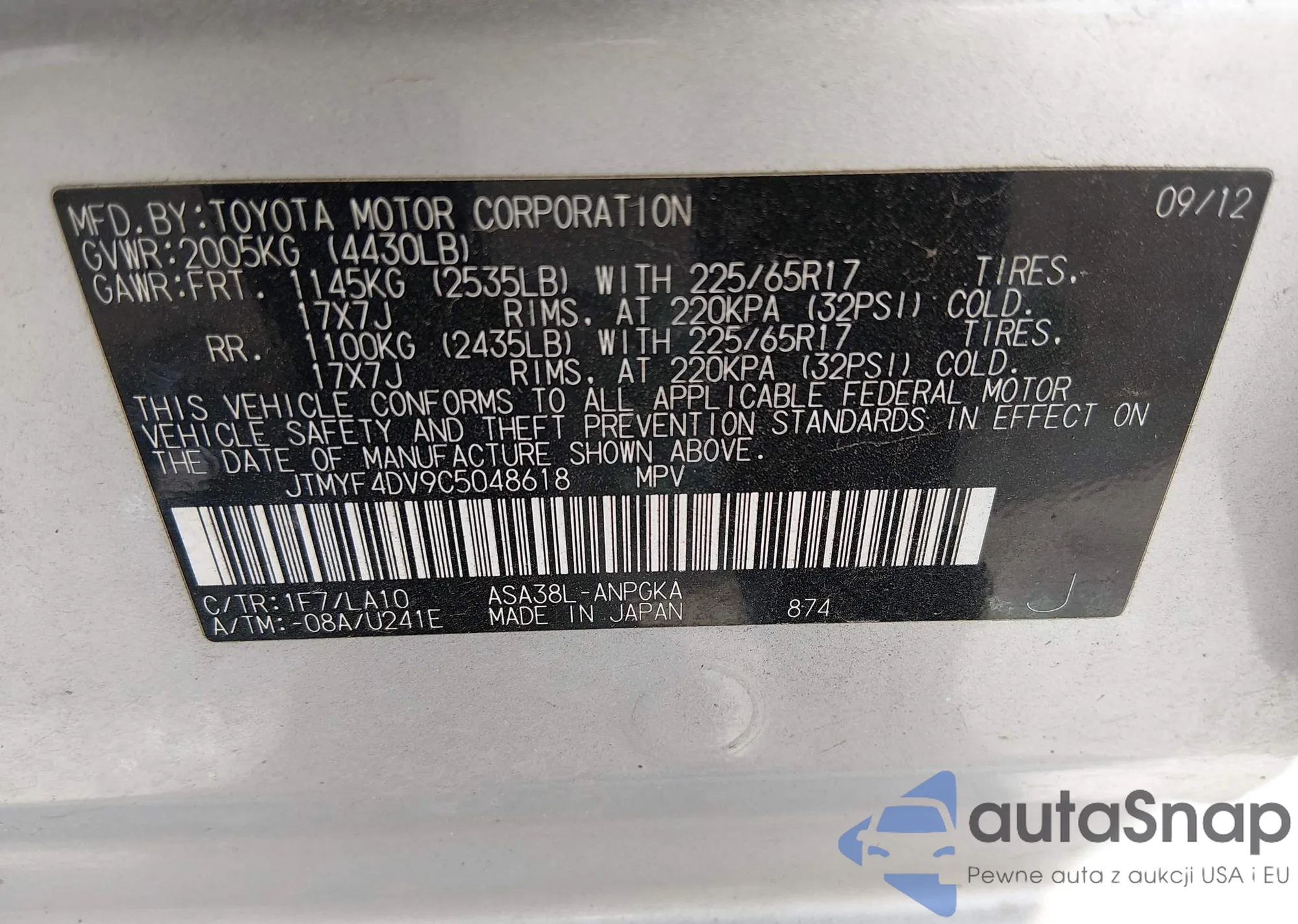 • VIN JTMYF4DV9C5048618