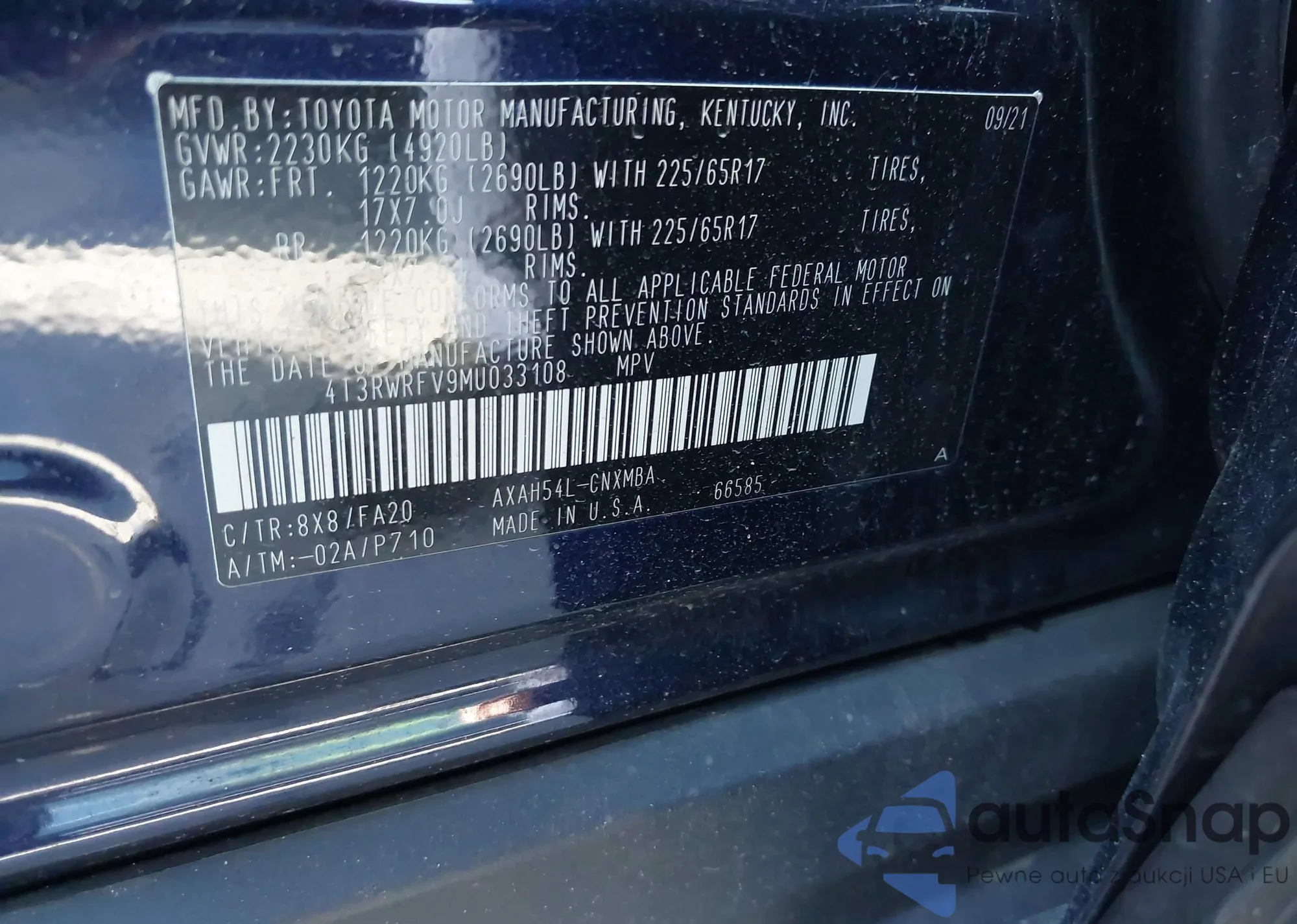 LOT: 44078223 VIN: 4T3RWRFV9MU033108