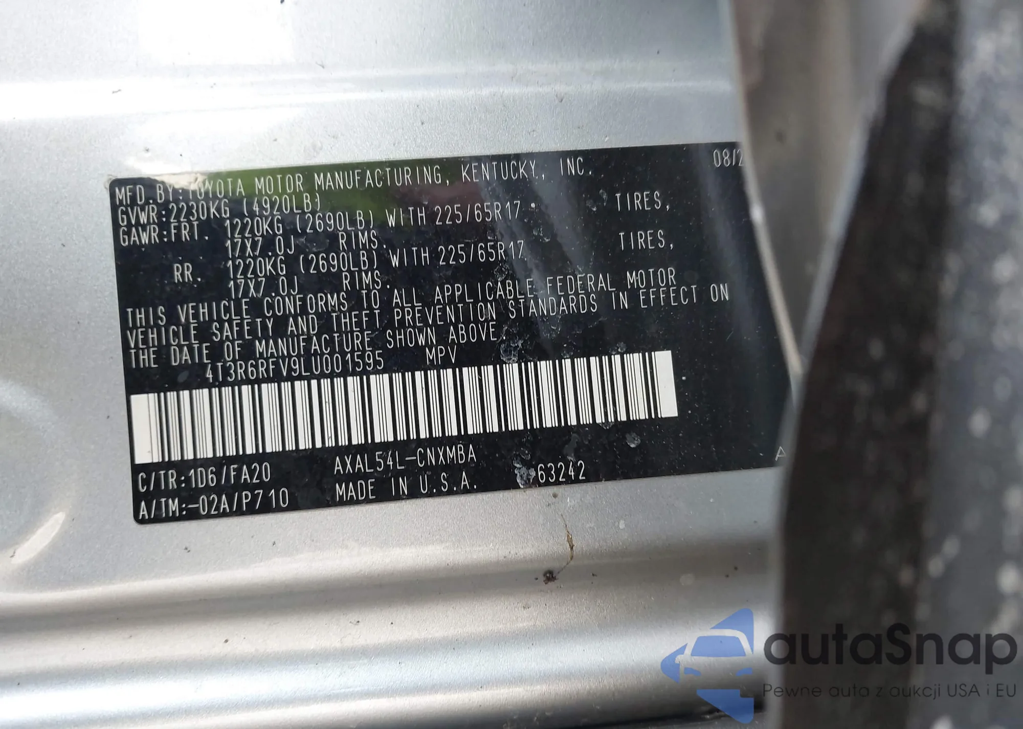 • VIN 4T3R6RFV9LU001595