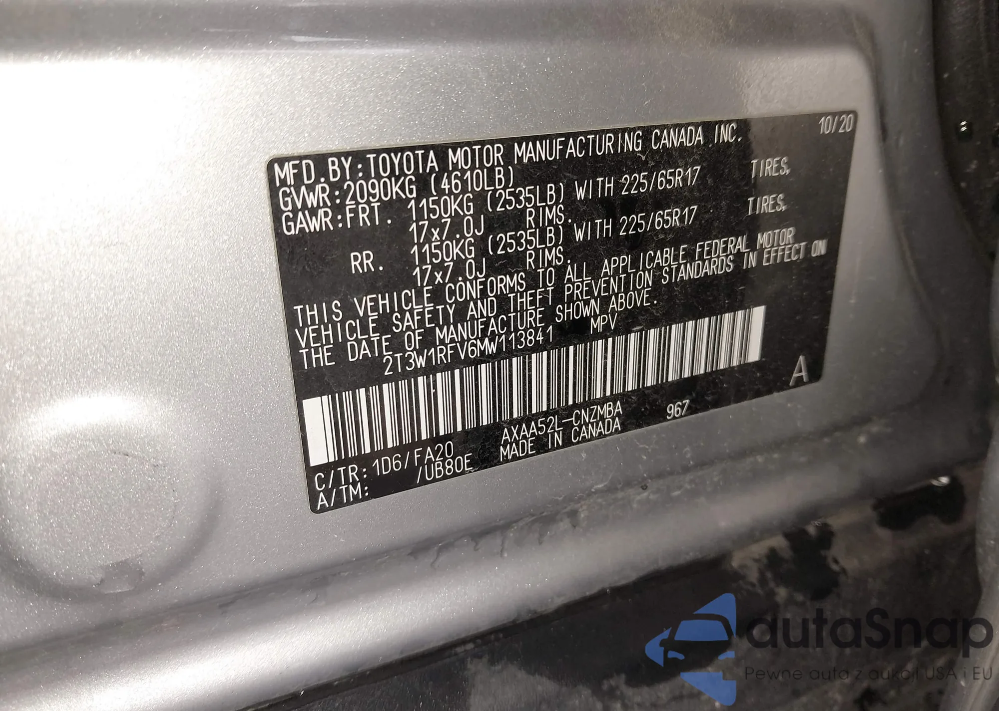• VIN 2T3W1RFV6MW113841