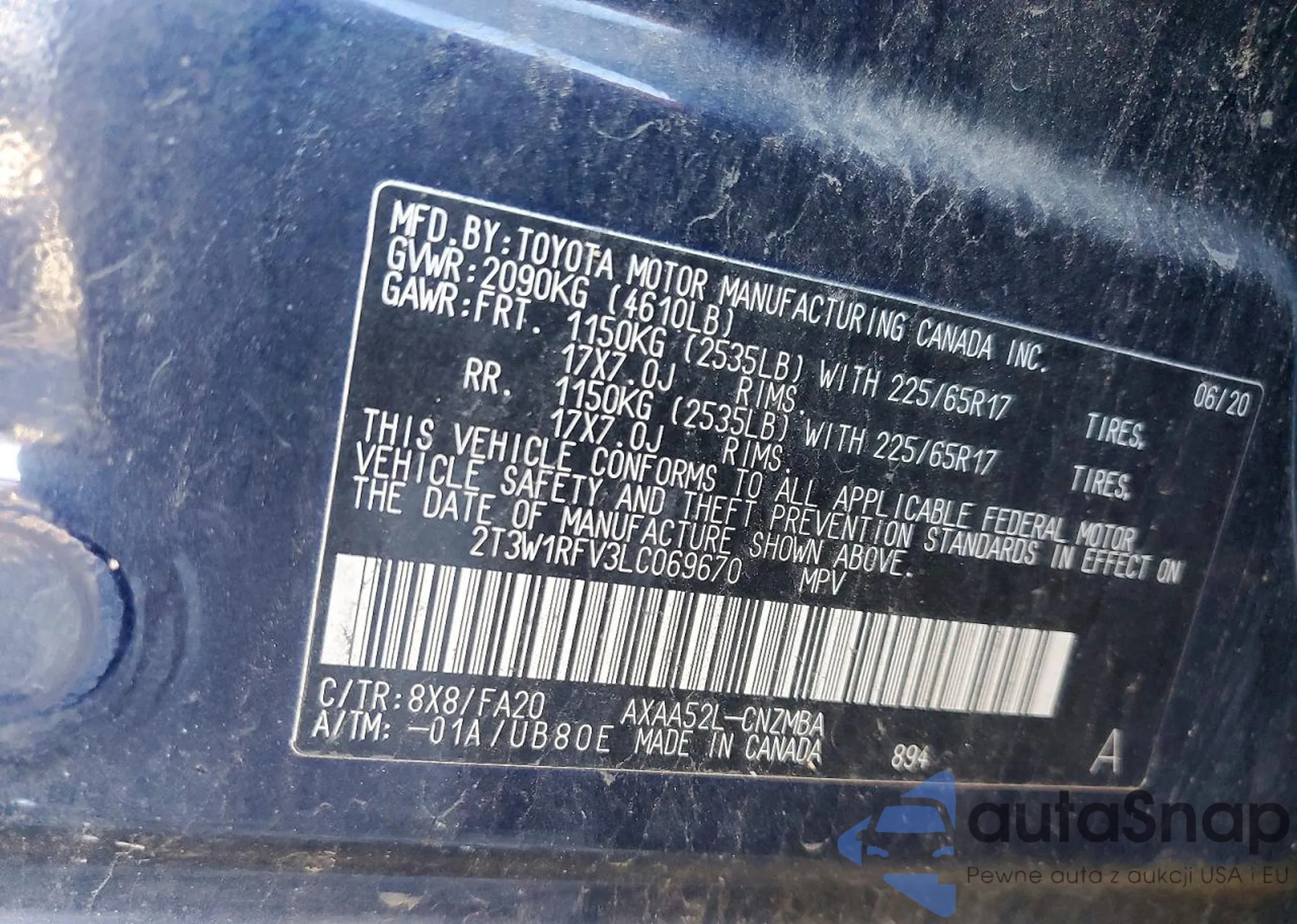 LOT: 73041465 VIN: 2T3W1RFV3LC069670