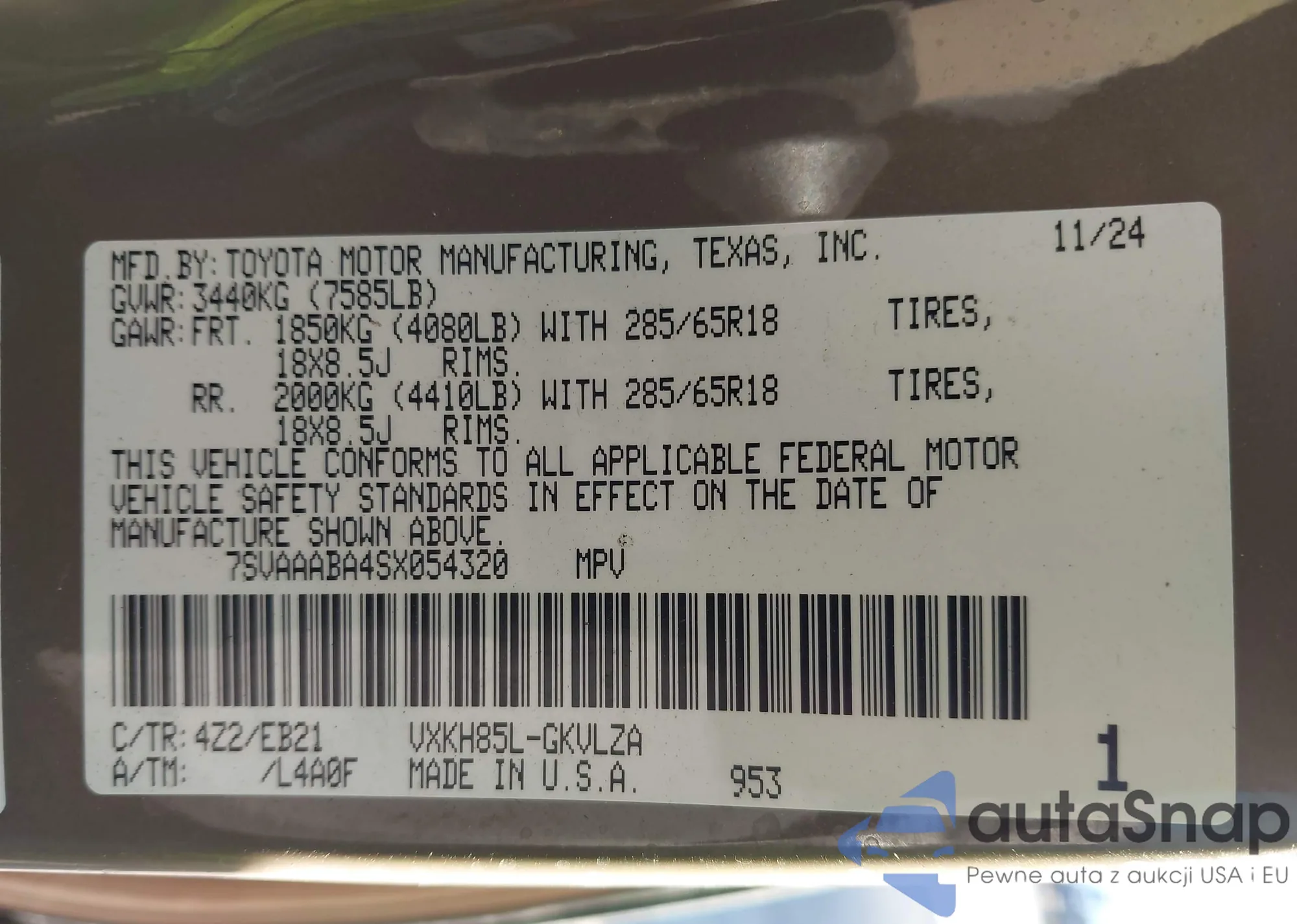 • VIN 7SVAAABA4SX054320