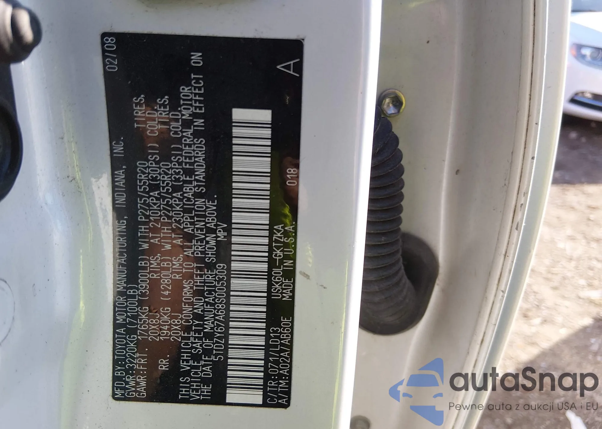 LOT: 44497038 VIN: 5TDZY67A68S005309