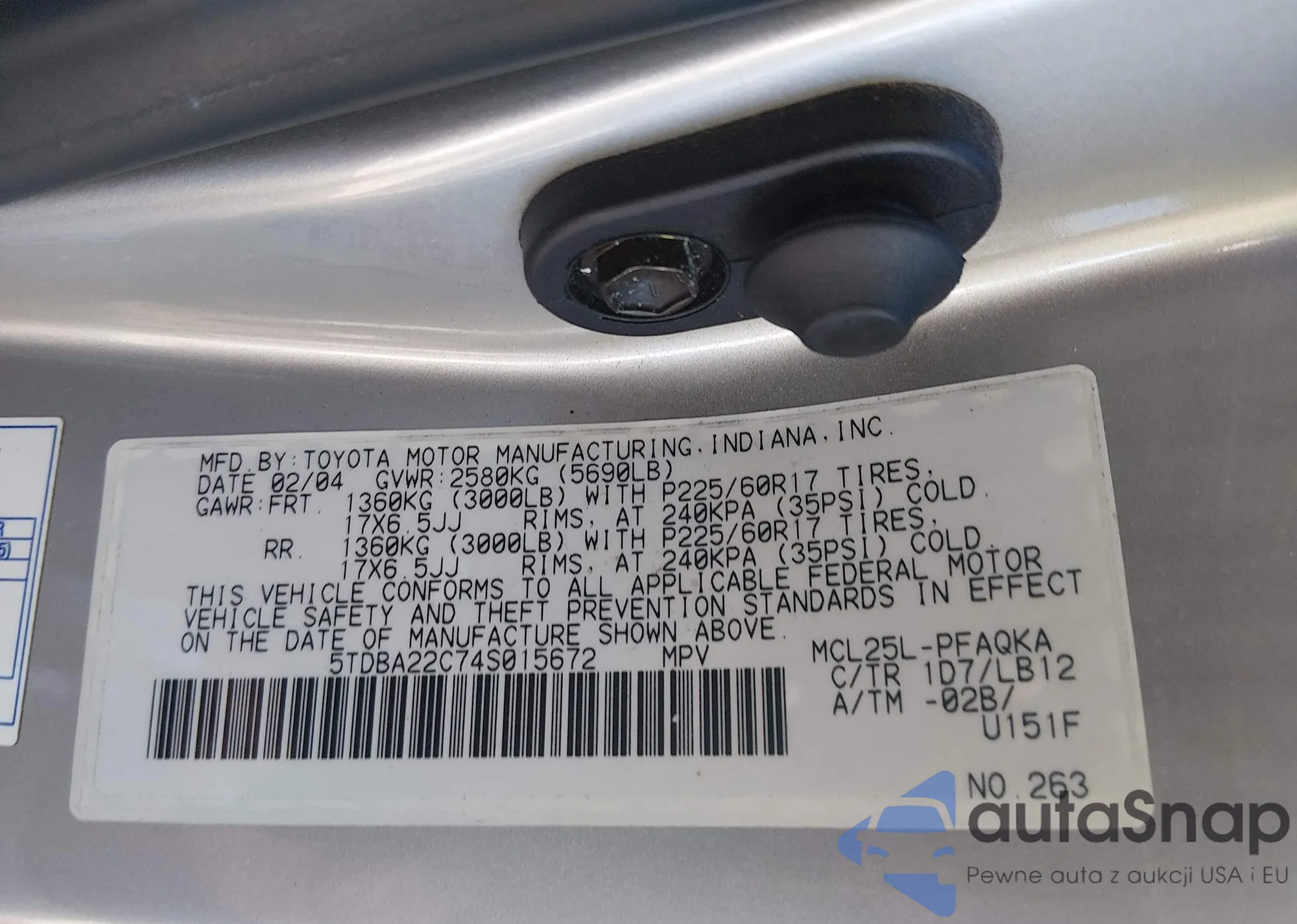 LOT: 44419166 VIN: 5TDBA22C74S015672