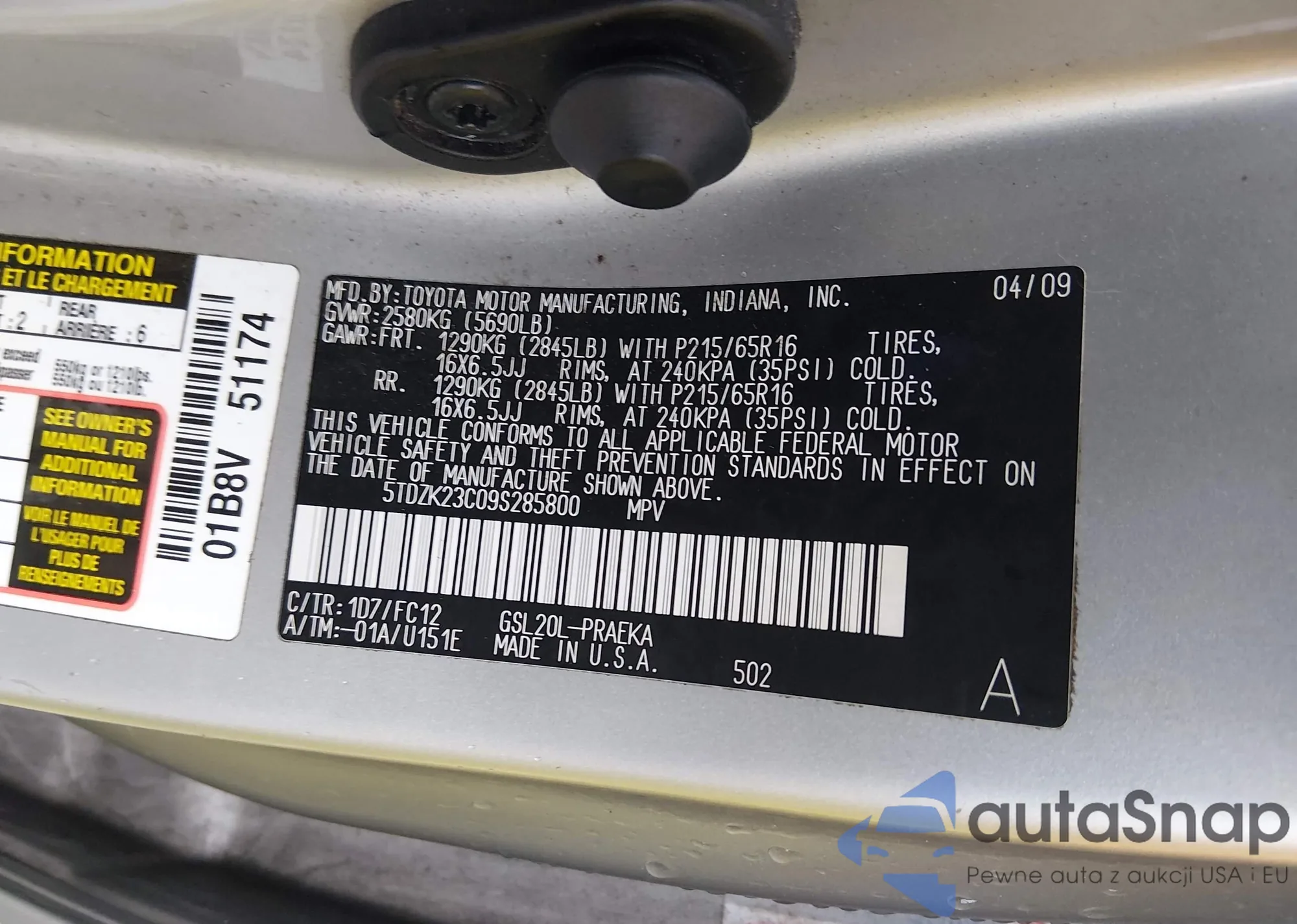 LOT: 44428758 VIN: 5TDZK23C09S285800