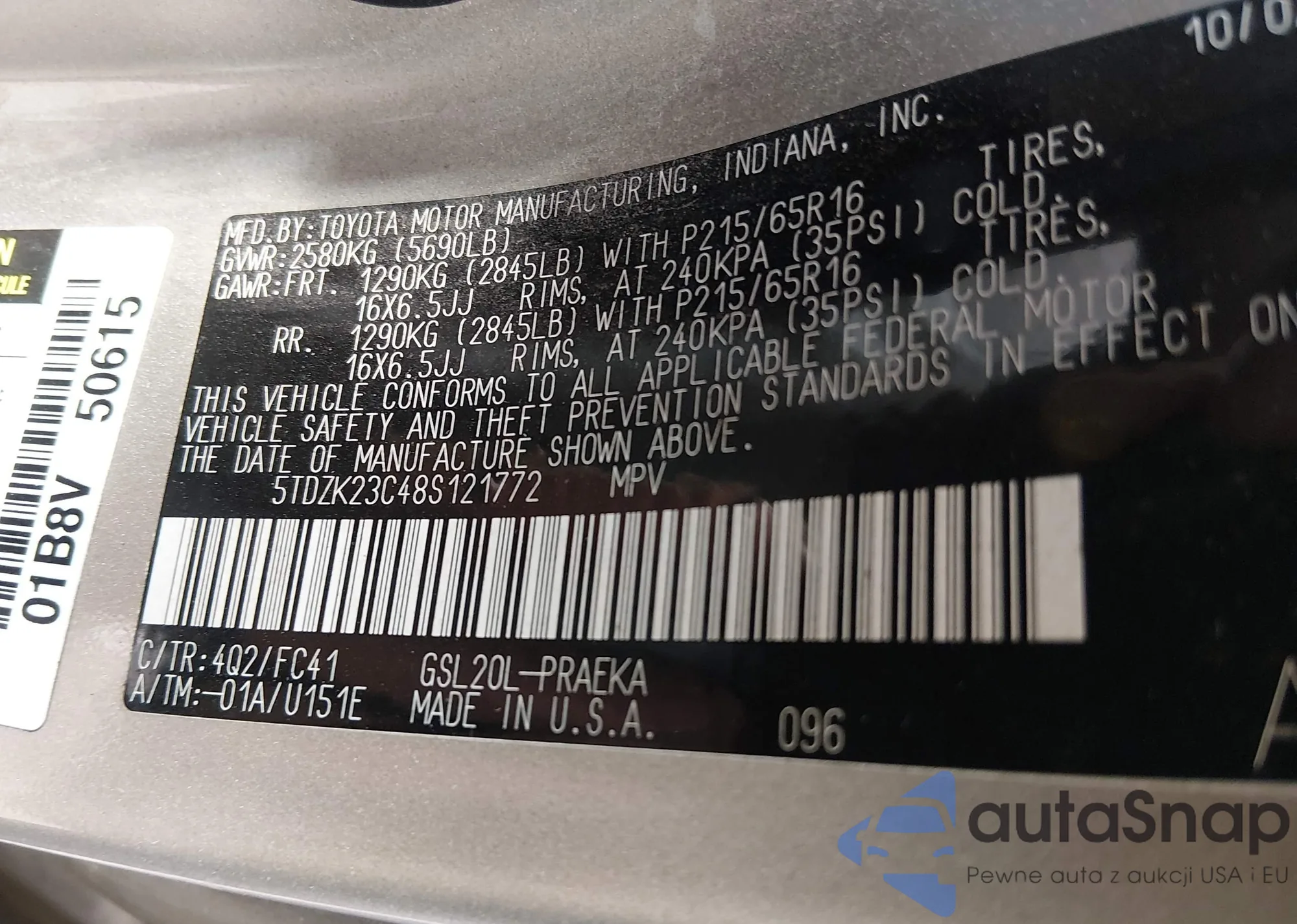 LOT: 44412801 VIN: 5TDBK22C48S015504