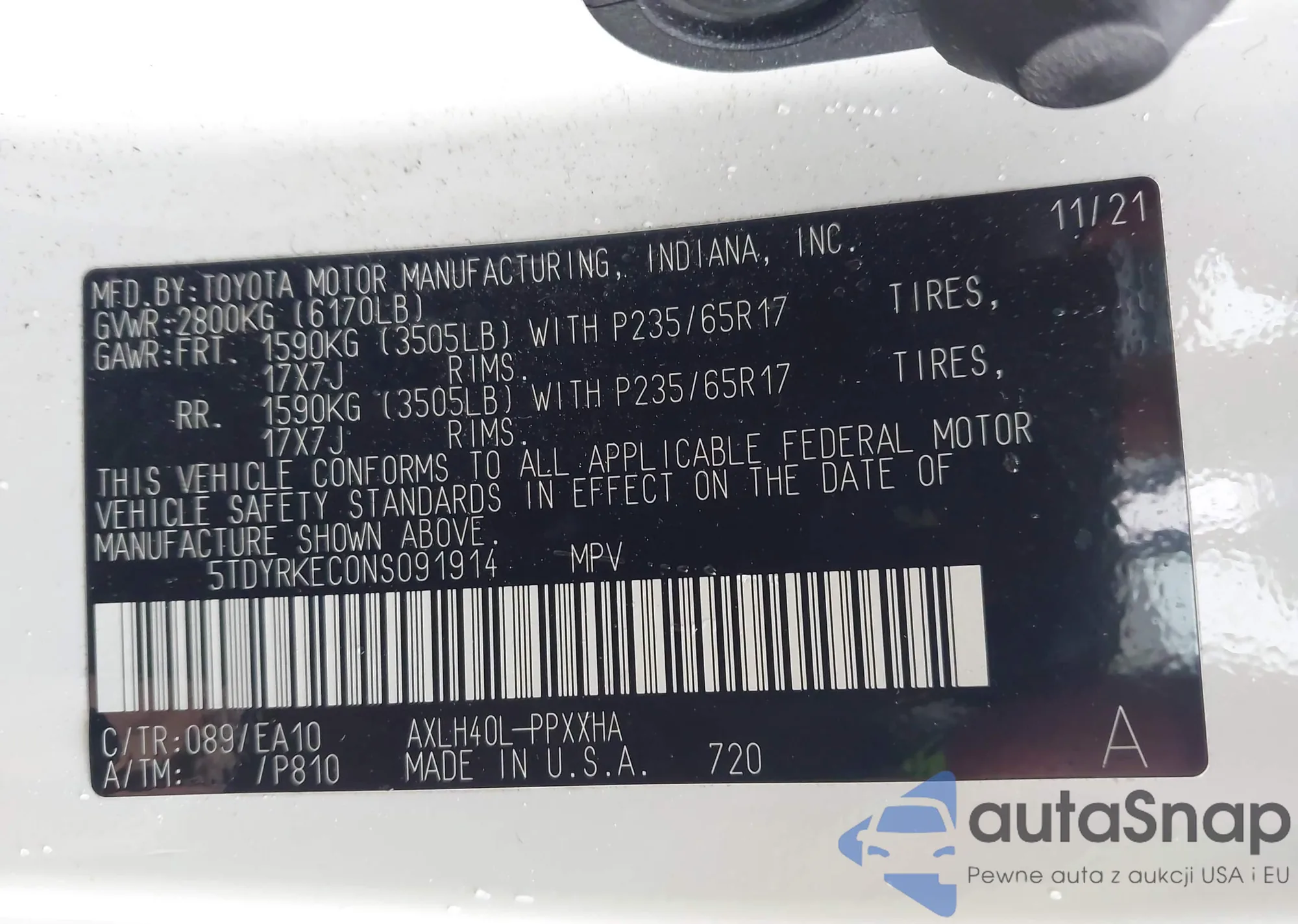 • VIN 5TDDRKEC5MS019491
