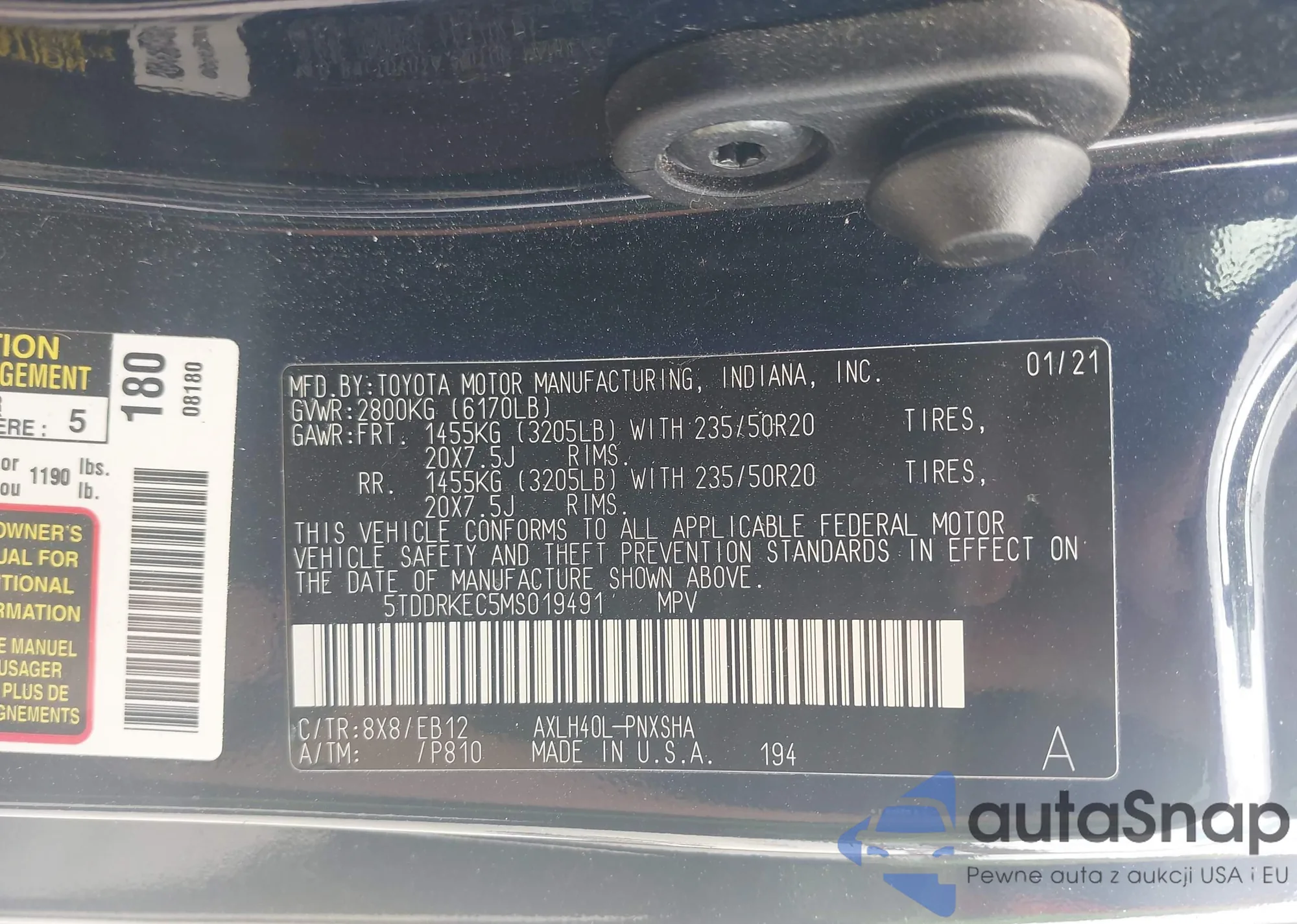 LOT: 44427538 VIN: 5TDDRKEC5MS019491